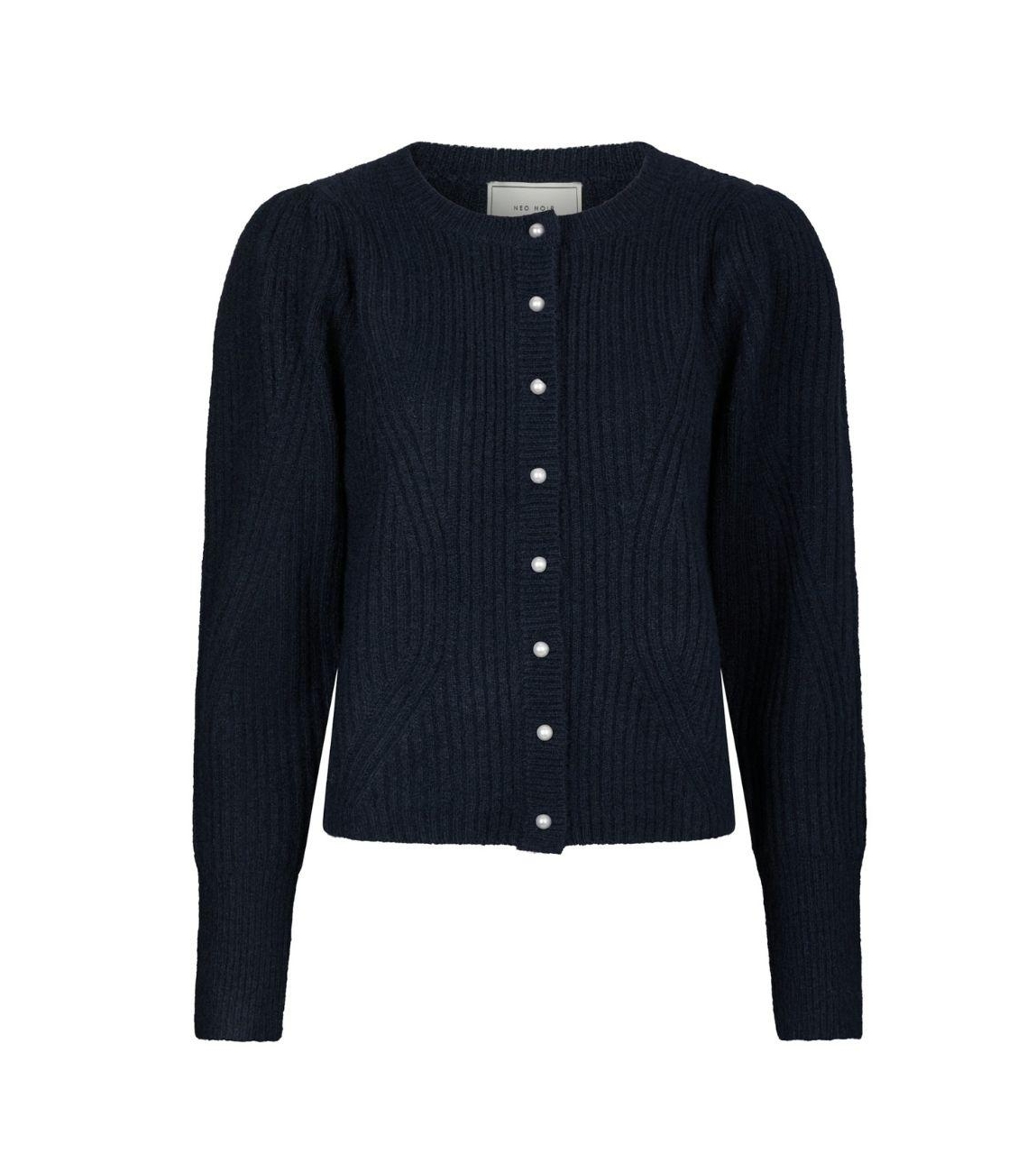 Neo Noir vest Puli 164838. Dit rechtvallend model is voorzien van een ronde hals en heeft lange mouwen. Deze baluwe geribde vest van Neo Noir sluit door middel van parelknopen.