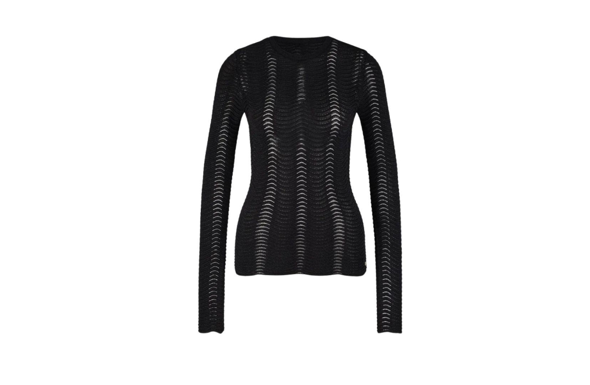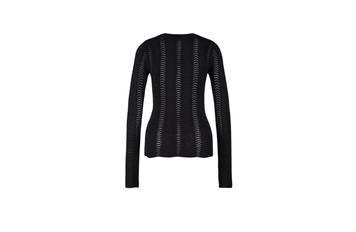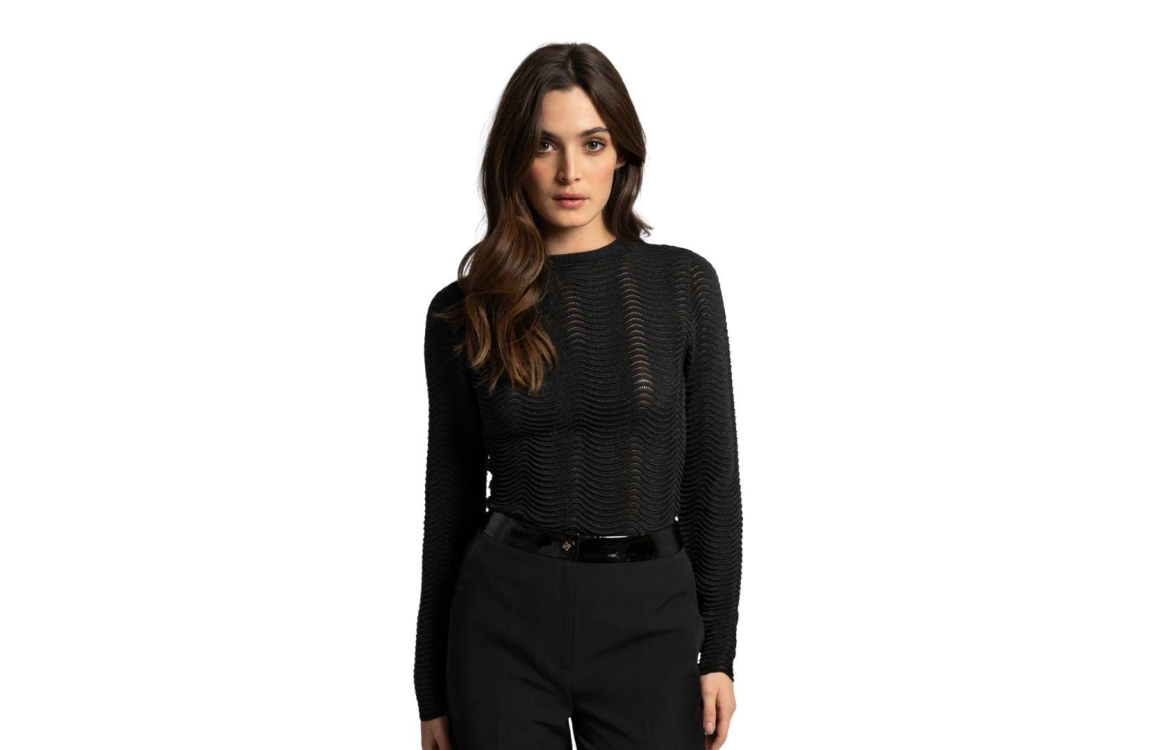 Nikkie Lucena Top N7-535 2505. Dit aangesloten model is voorzien van een ronde hals en heeft lange mouwen. Deze zwarte geribde top van Nikkie is all-over bewerkt met een subtiel glitterdraad.