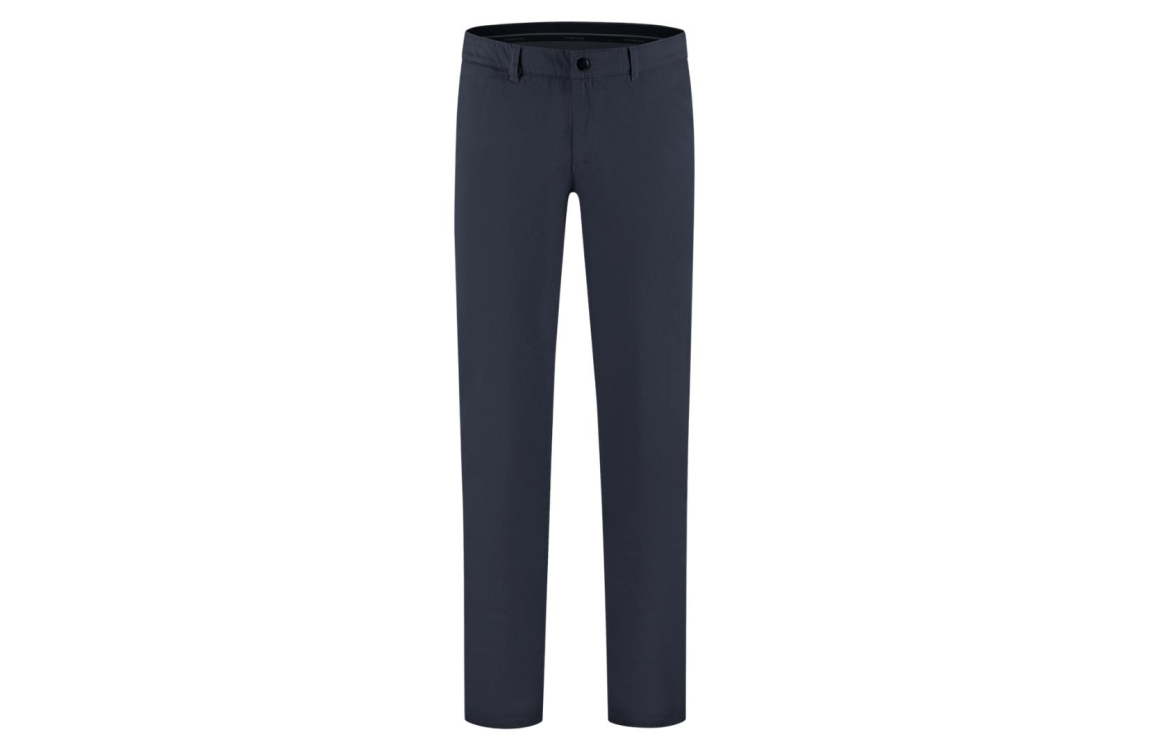NORTH84 Luxury Comfort Chino 21282137. Dit rechtvallend model sluit door middel van een knoop en een rits. Deze donkerblauwe chino van NORTH84 is voorzien van verschillende broekzakken en ceintuurlussen.