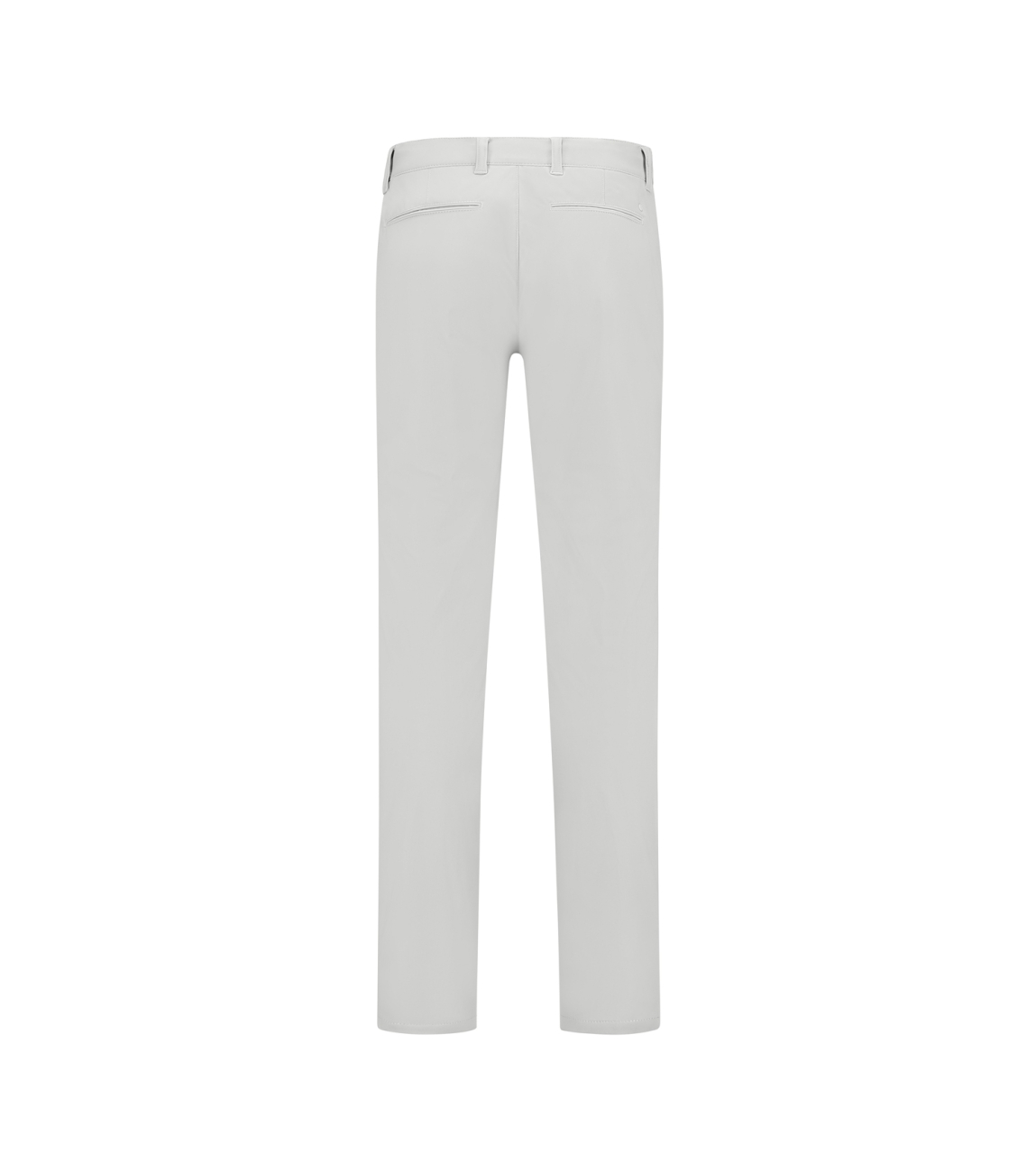 NORTH84 sensitive travel collection 84142010. Dit slim fit model heeft lange broekspijpen en sluit door middel van een knoop en een rits. Deze licht grijze broek van NORTH84 is afgewerkt met riemlussen en beschikt over 2 steekzakken met 1 muntzakje achter een rits.