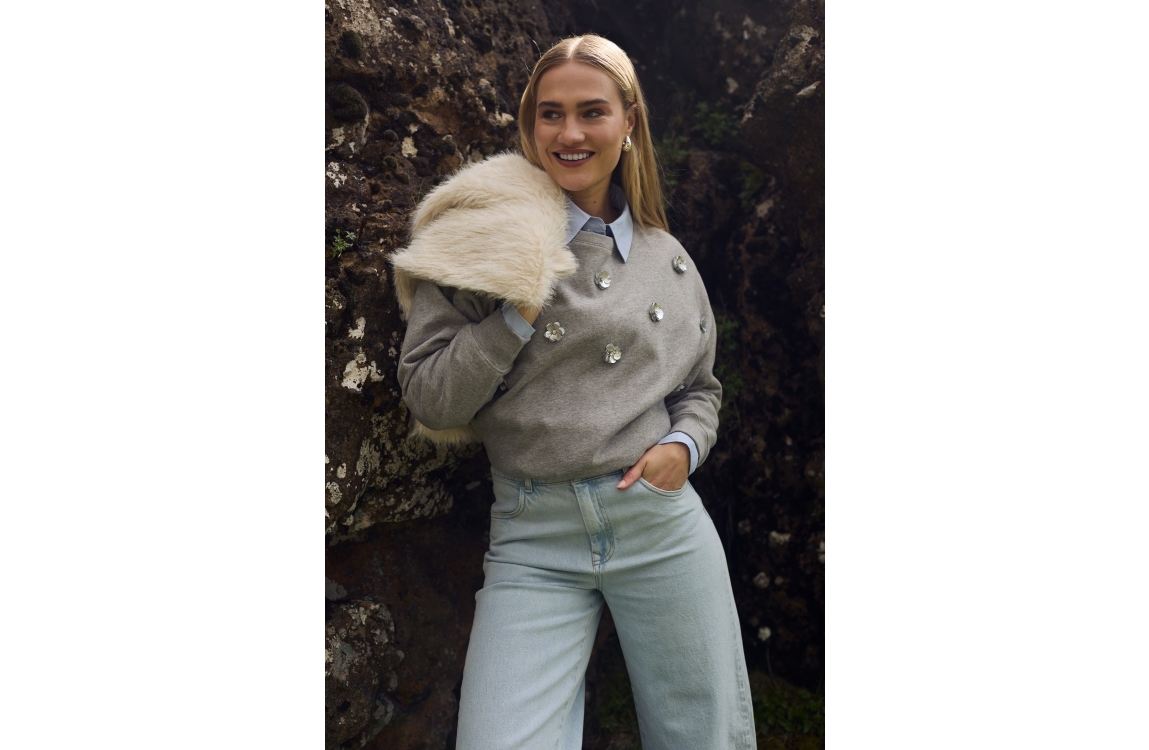 • NUKUS Beatriz Pullover Flower 58 grey melange