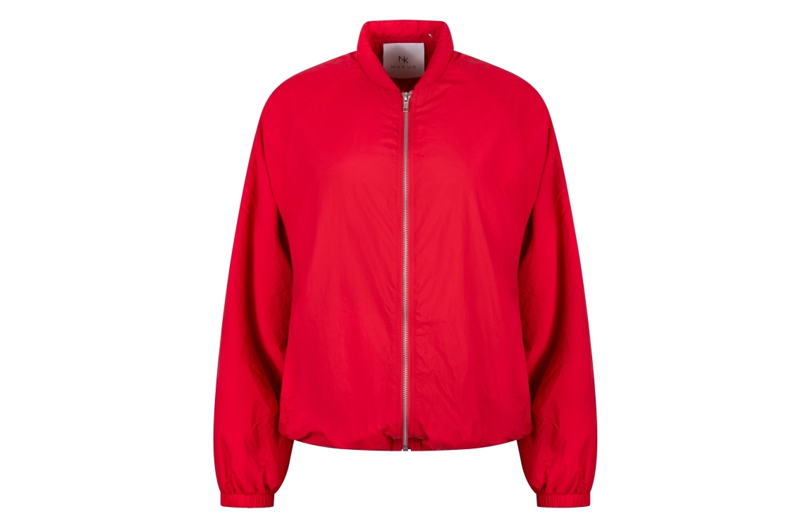 NUKUS Jenny Jacket 373 kiss. Dit bomber model is voorzien van een ronde hals en heeft lange mouwen. Deze rode bomber van Nukus sluit door middel van een rits.