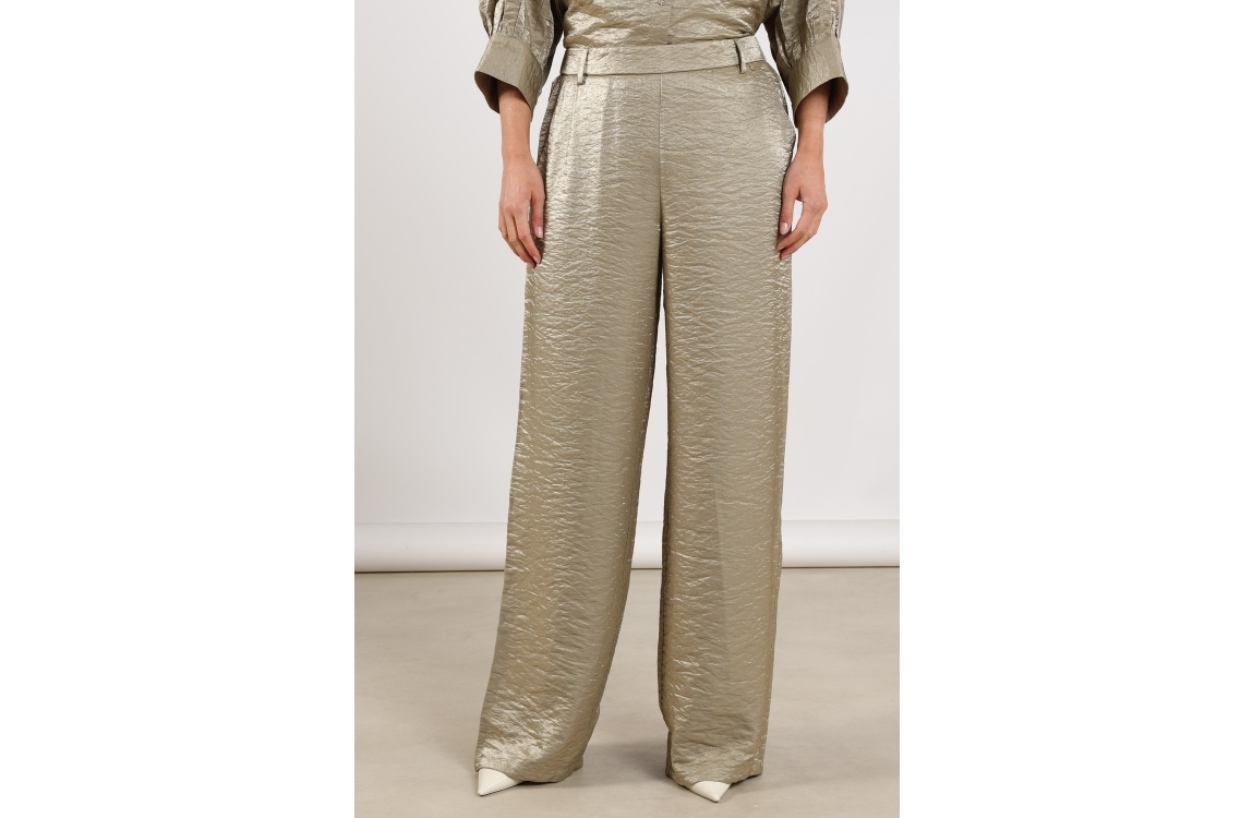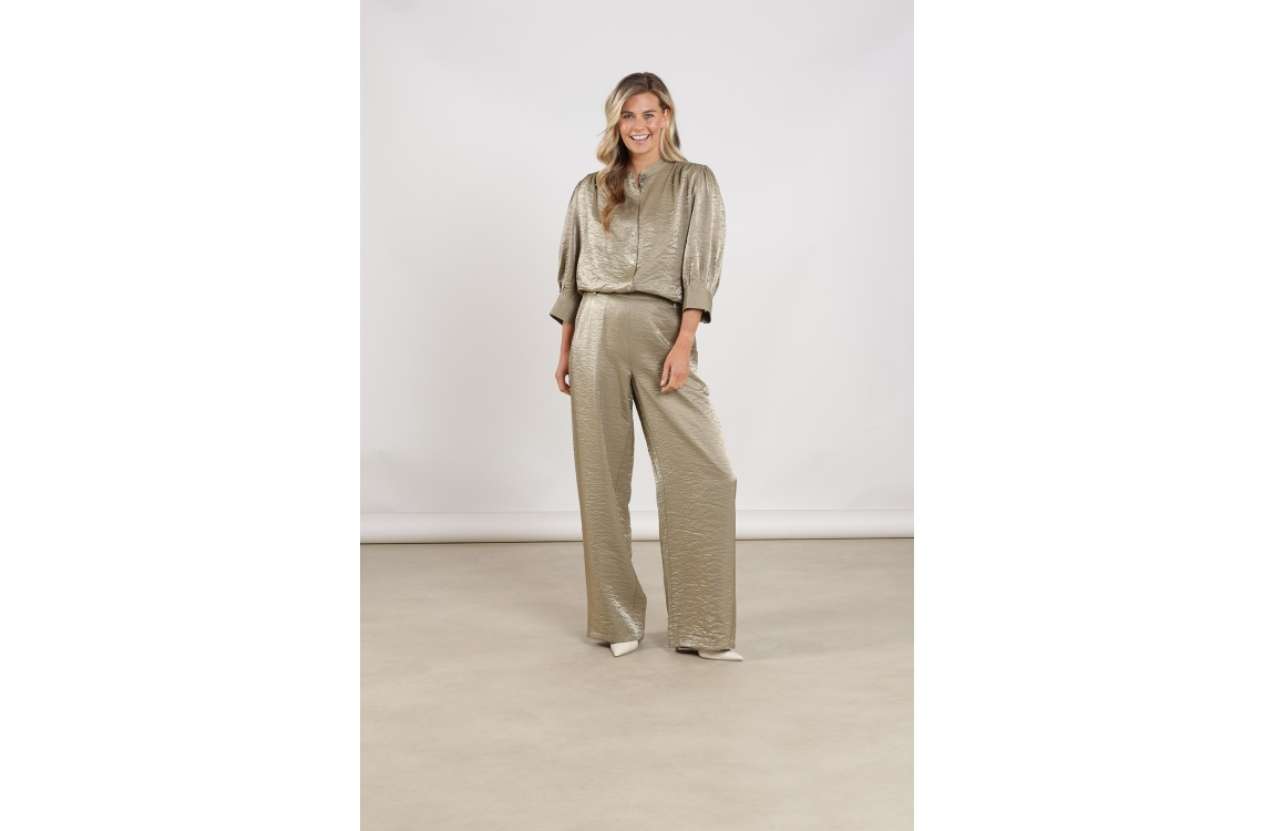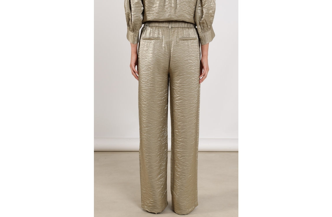 NUKUS Linsey Pants 350 army. Dit soepelvallende model sluit door middel van een elastische achterkant in de taille. Deze groene broek van Nukus is voorzien van twee steekzakken aan de voorzijde en paspelzakken aan de achterzijde. Dit model is uitgevoerd in een subtiele glans.