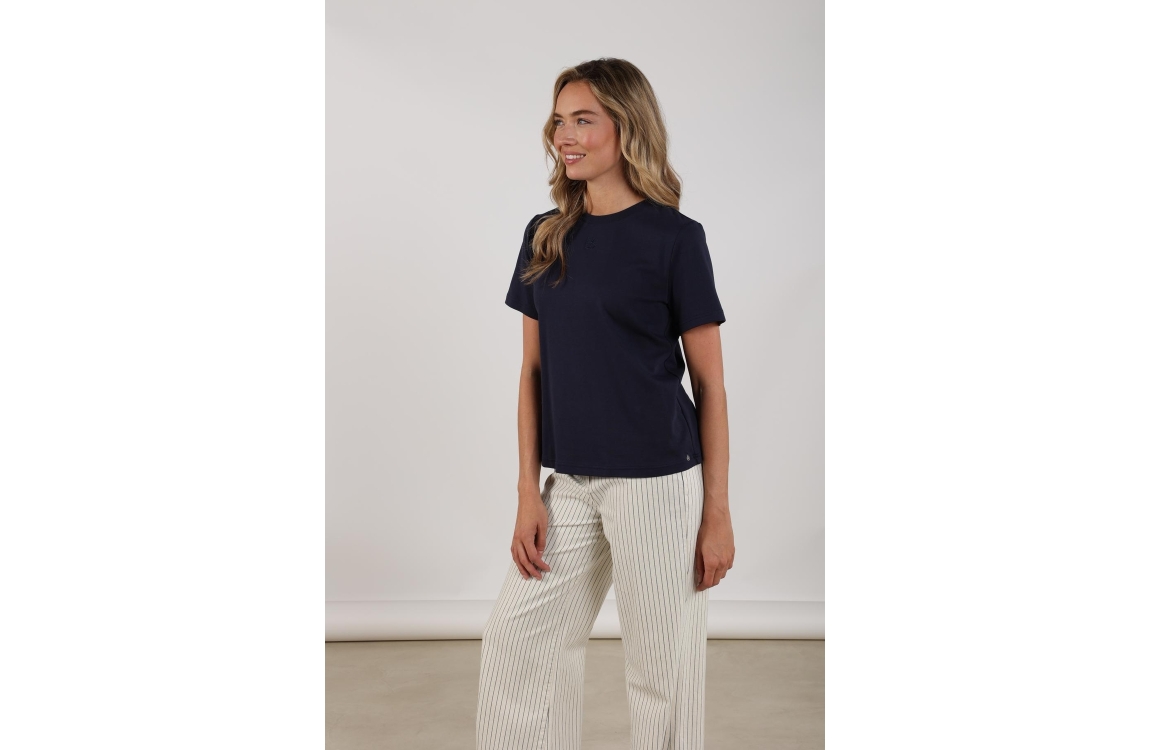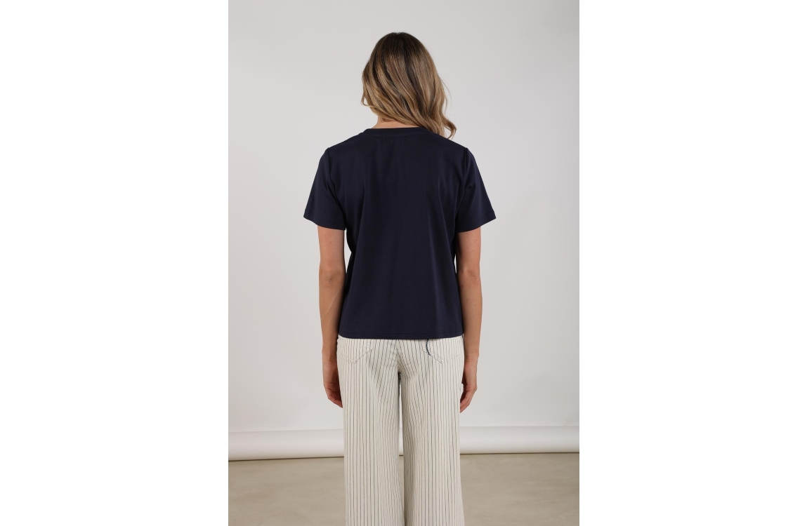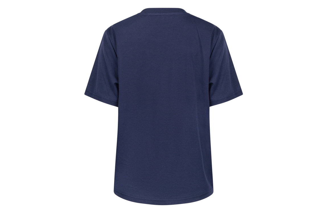 NUKUS Luna Shirt 70 navy. Dit rechtvallende model is voorzien van een ronde hals en heeft korte mouwen. Dit donker blauwe shirt van Nukus is in het midden op de borst bewerkt met het logo.