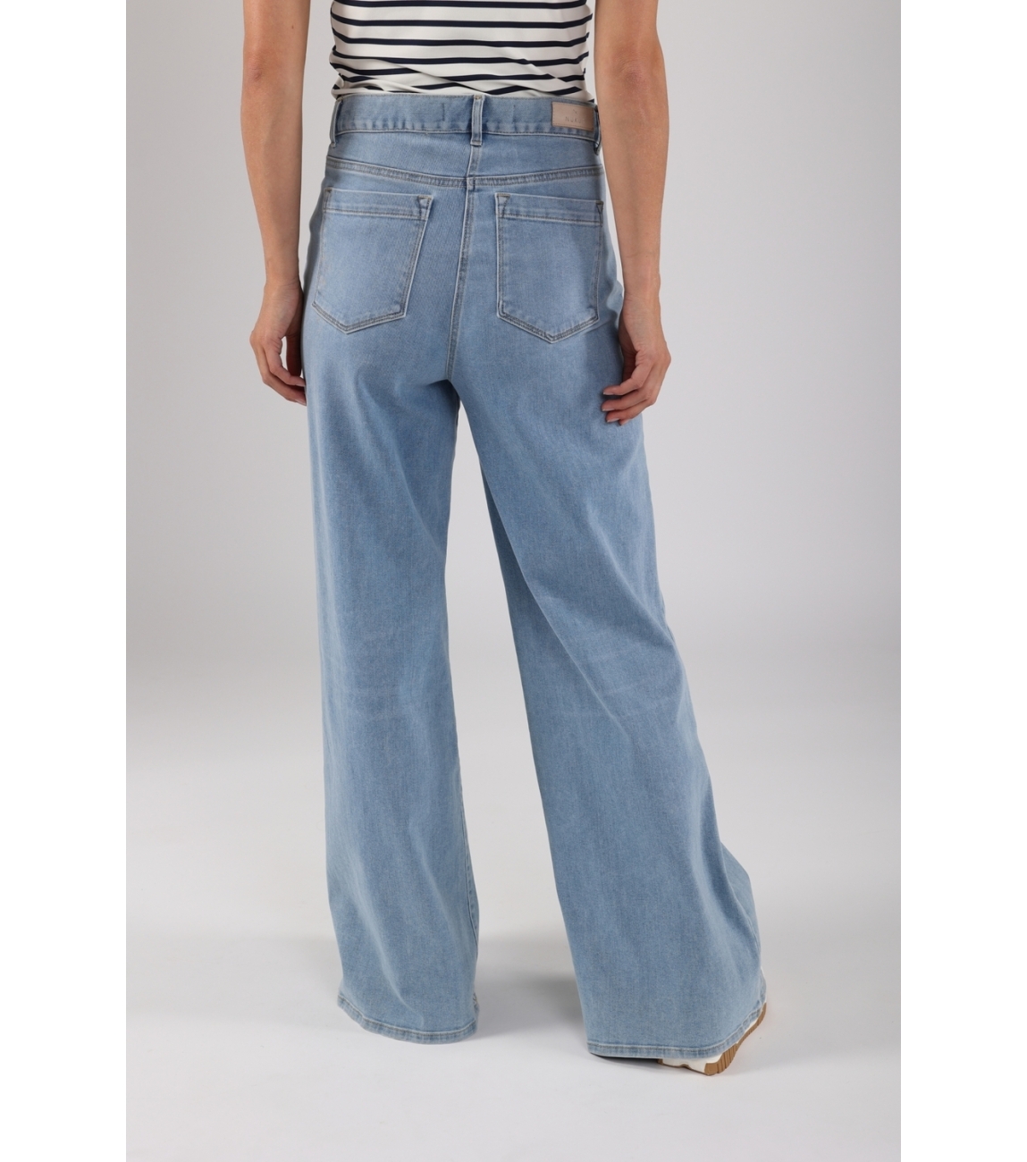 Nukus jeans Ruby NKS09023. Dit wide leg model sluit door middel van een knoop en rits afgewerkt met ceintuurlussen. Deze jeans is uitgevoerd in een 5-pocket model.