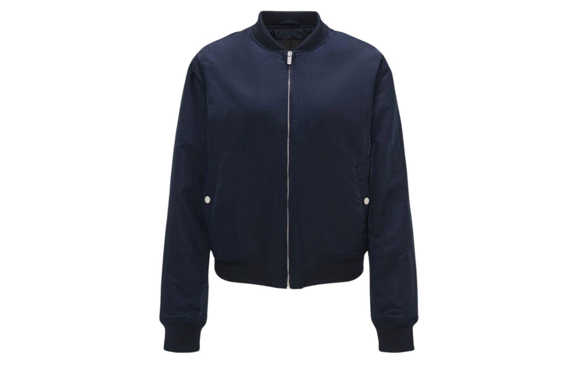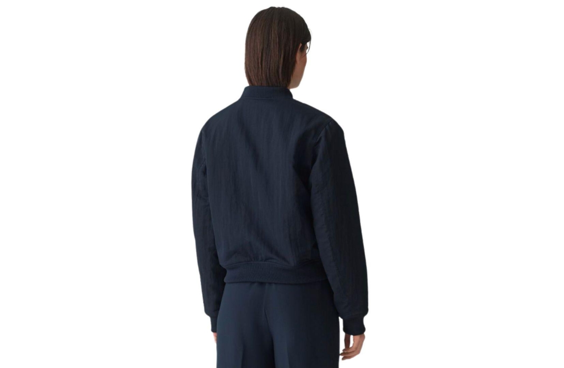 Opus jasje Haru 10348812720323. Dit bomber model is voorzien van een ronde hals en heeft lange mouwen. Dit donkerblauwe jasje sluit door middel van een rits en beschikt over twee steekzakken met knoop.