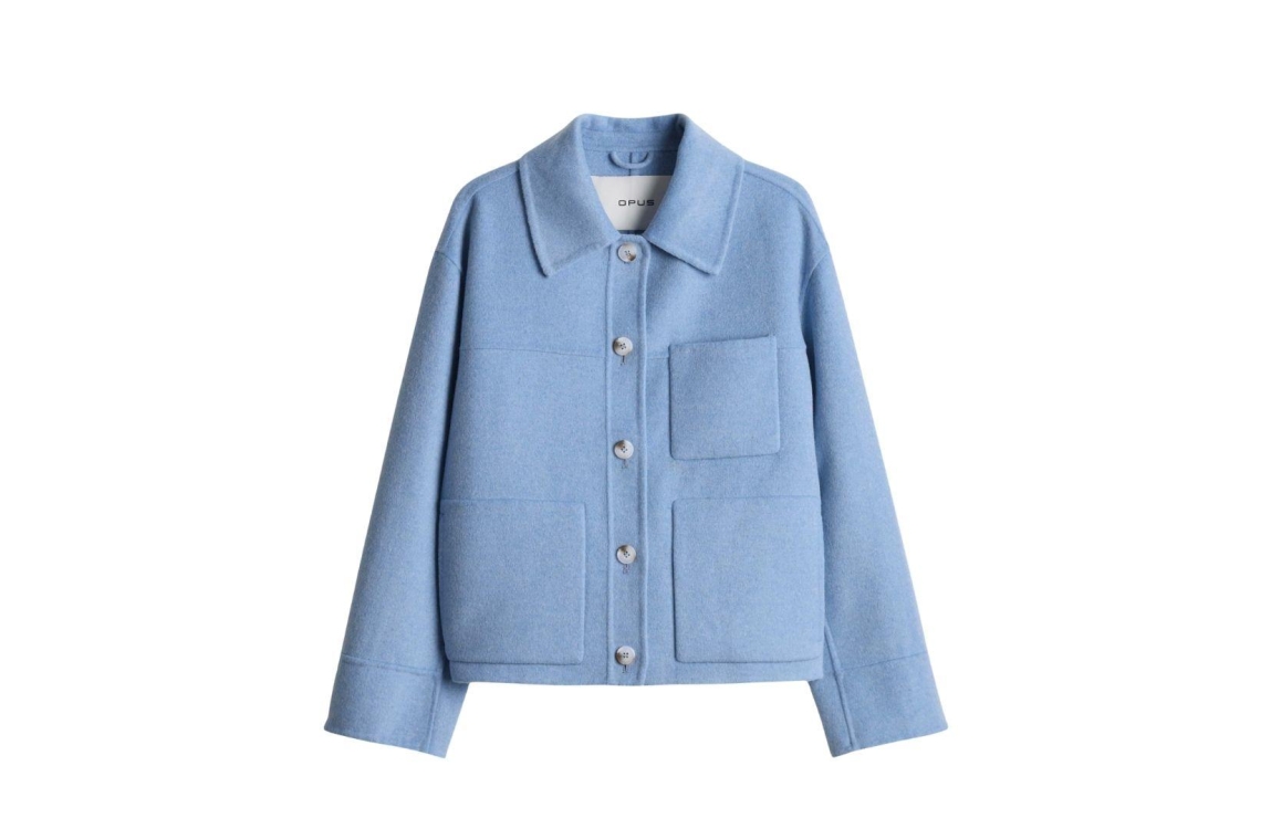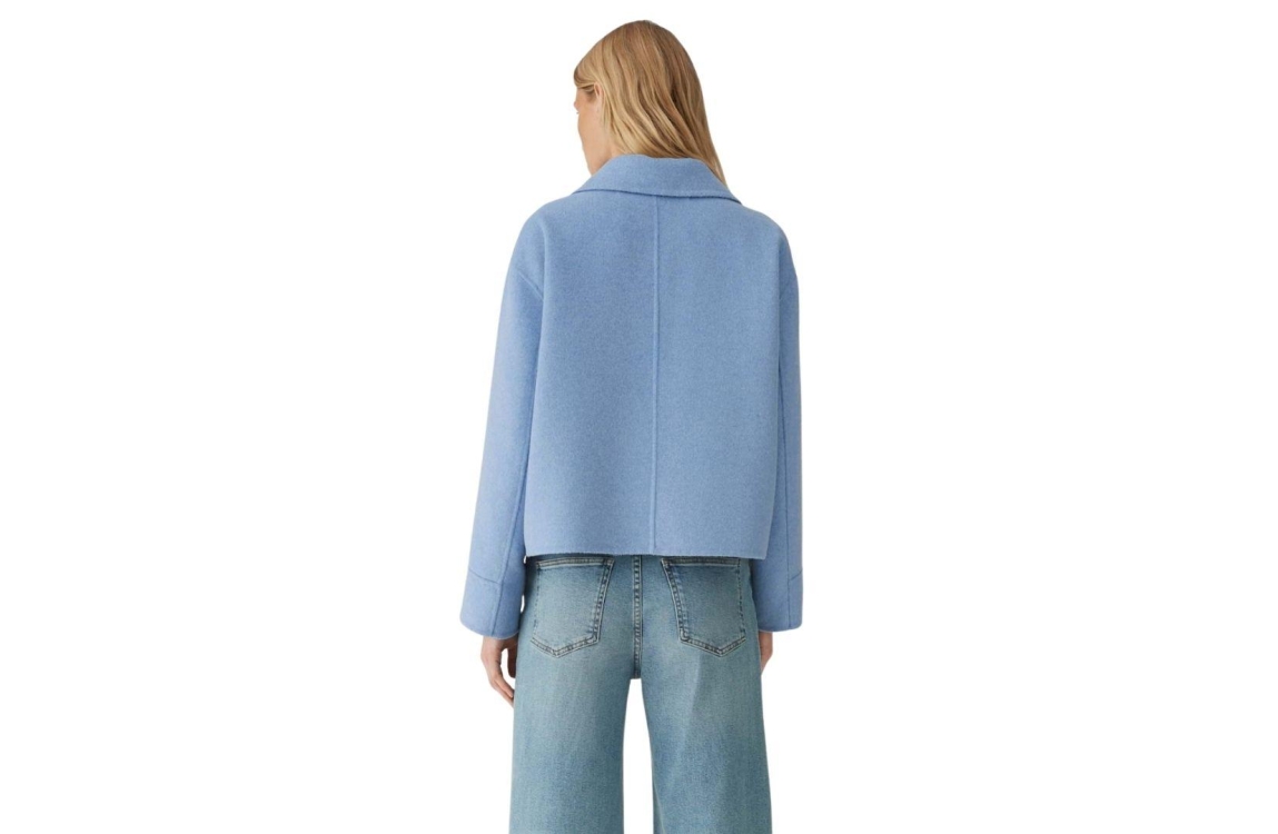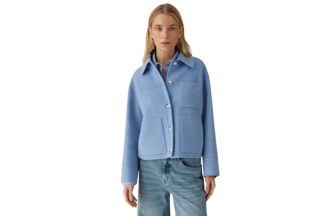 Opus jasje Helia 10519712558412. Dit losse model is voorzien van een kraag en heeft lange mouwen. Dit blauwe wollen jasje van Opus sluit door middel van knopen en beschikt over een borstzak en twee steekzakken.