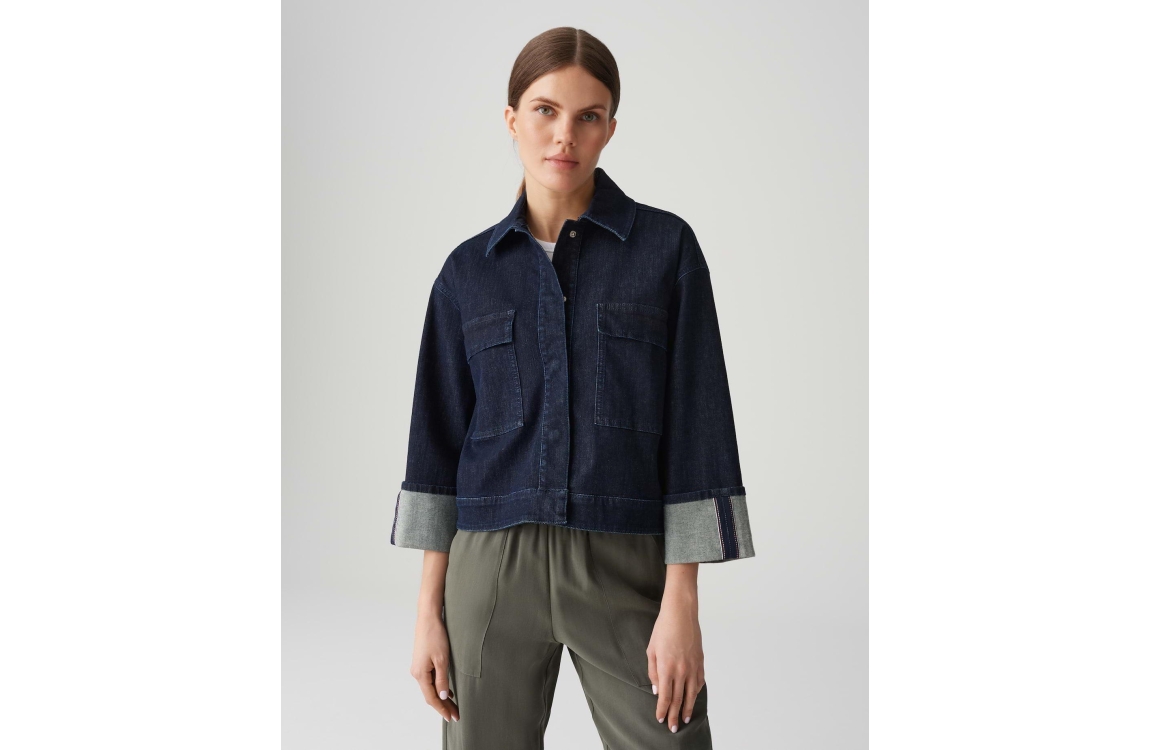 Opus Hollice 7439 Rinsed blue. Dit rechtvallende model is voorzien van driekwart mouwen en heeft een kraag. Deze denim blouse van Opus sluit aan de voorzijde door middel van knopen en is voorzien van twee klepzakken. Dit model is afgewerkt met omgeslagen mouwen.