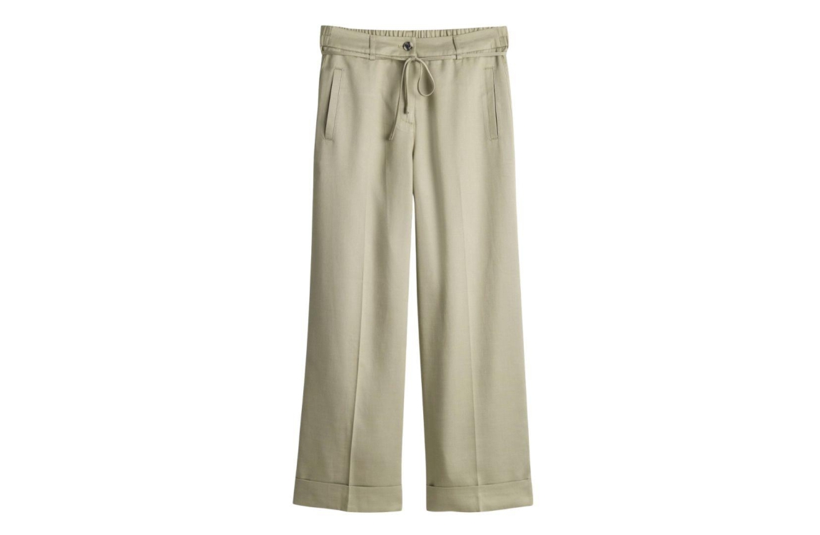 Opus broek Meeri Bloom 10534413973106. Dit wijdvallend relaxed model sluit door middel van een knoop en rits met een afneembaar strikkoord. Deze groene broek van Opus beschikt over twee steekzakken aan de voorzijde en twee paspelzakken aan deachterzijde. Dit model is afgewerkt met een omgeslagen zoom.