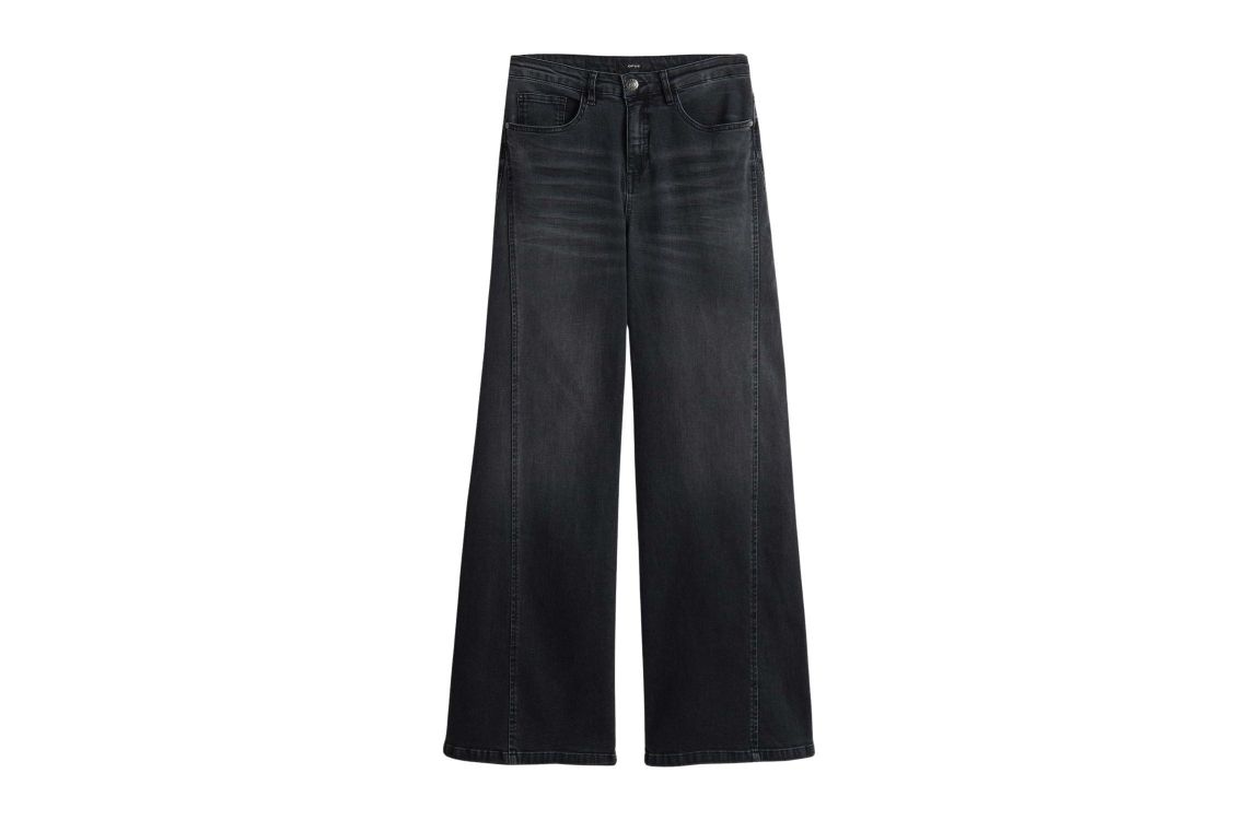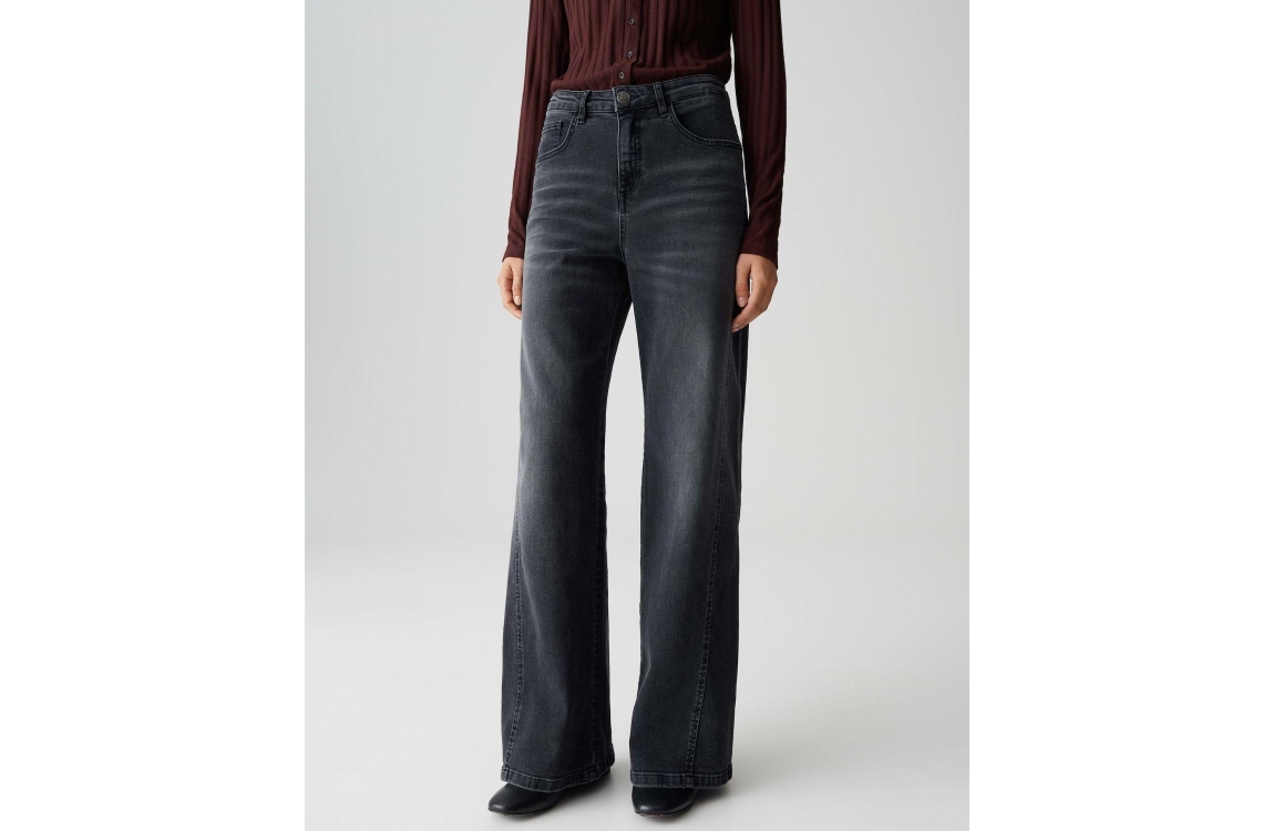 Opus Miva modern 70271 Mid iconic grey. Dit wijdvallend model sluit door middel van een knoop en een rits. Deze grijze jeans van Opus heeft een wijde lange pijp en normale taille. Deze jeans heeft riemlusjes en is uitgevoerd in een 5-pocket model.