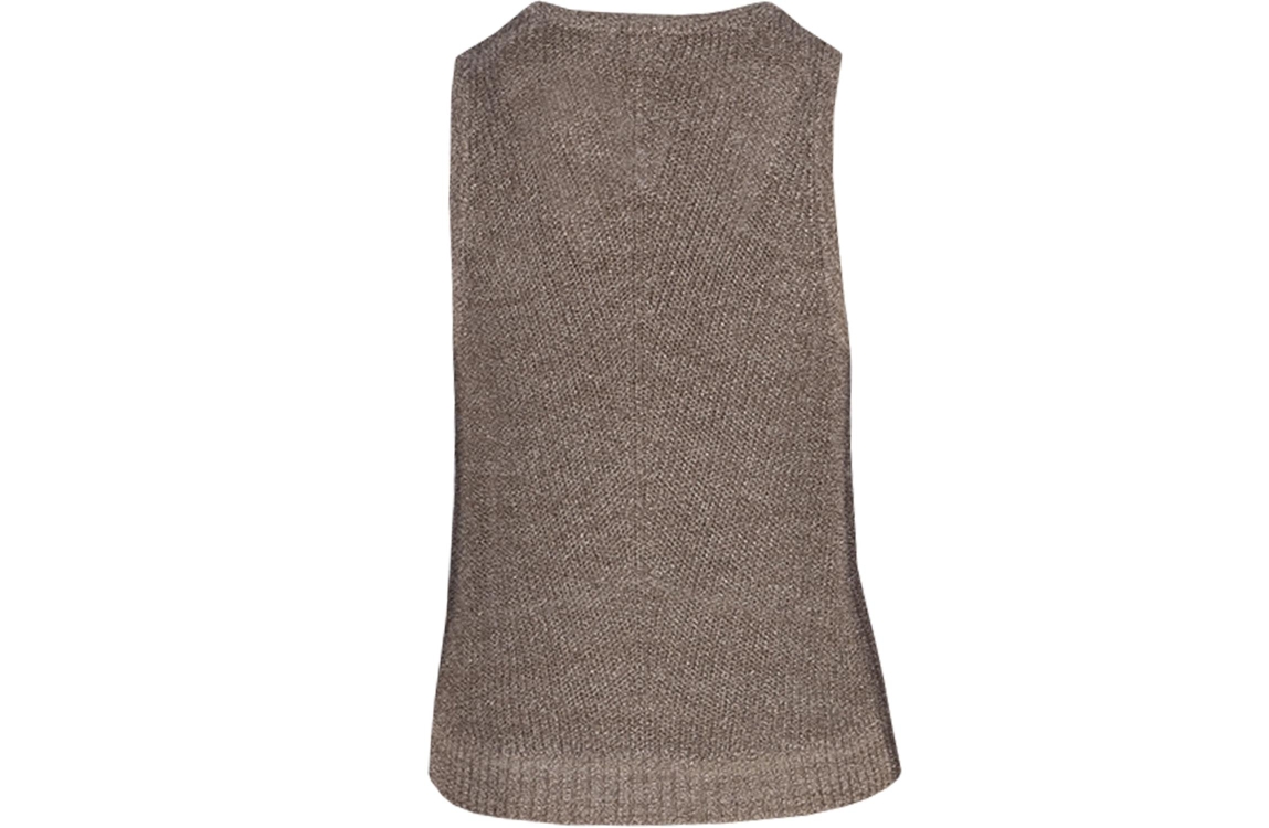 OPUS top 10284112261258. Dit rechtvallende model heeft een ronde hals en heeft geen mouwen. Dit bruine Opus van OPUS is bewerkt met een glitter.