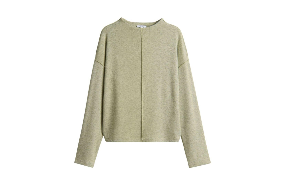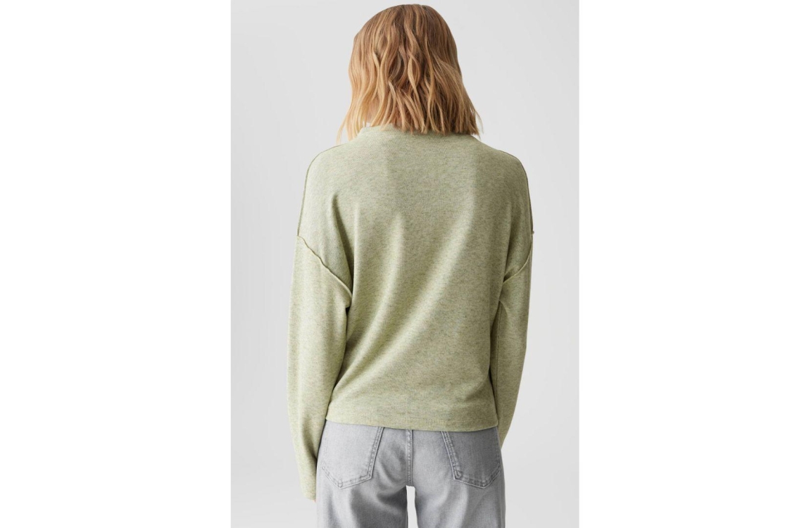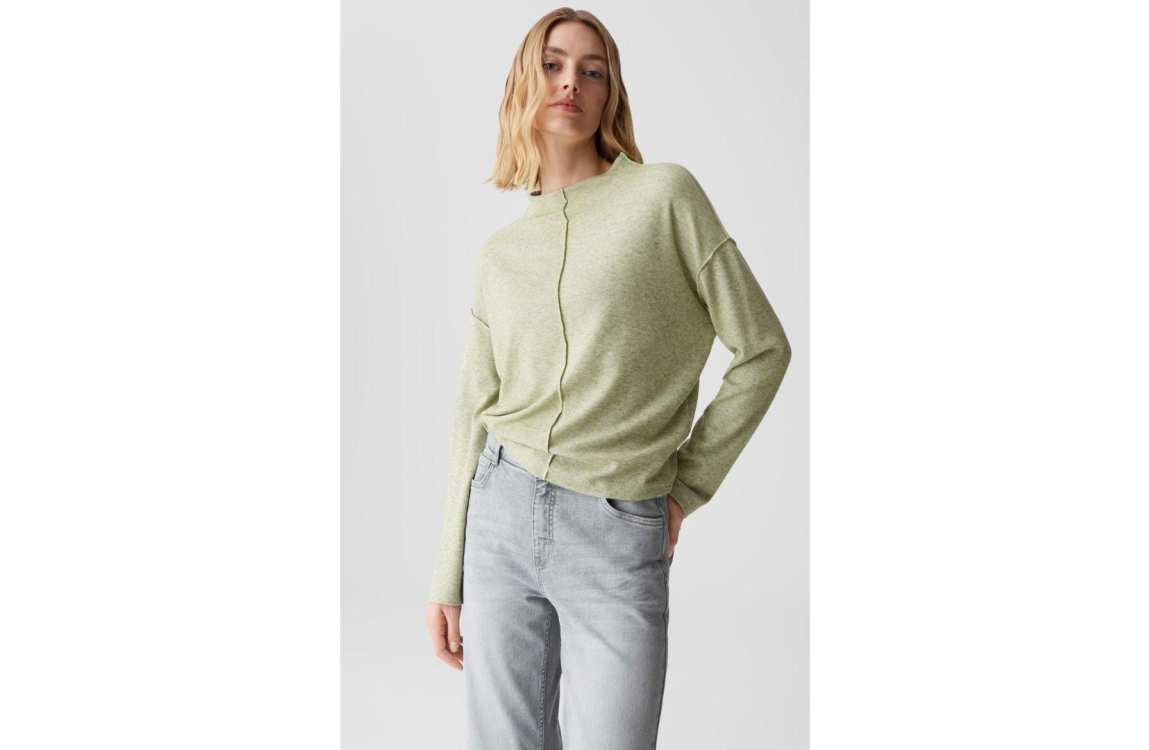 Opus shirt 10478013577100. Dit rechtvallend model is voorzien van een trechterhals en heeft lange mouwen. Deze matcha kleurige shirt van Opus heeft een gemêleerd effect.