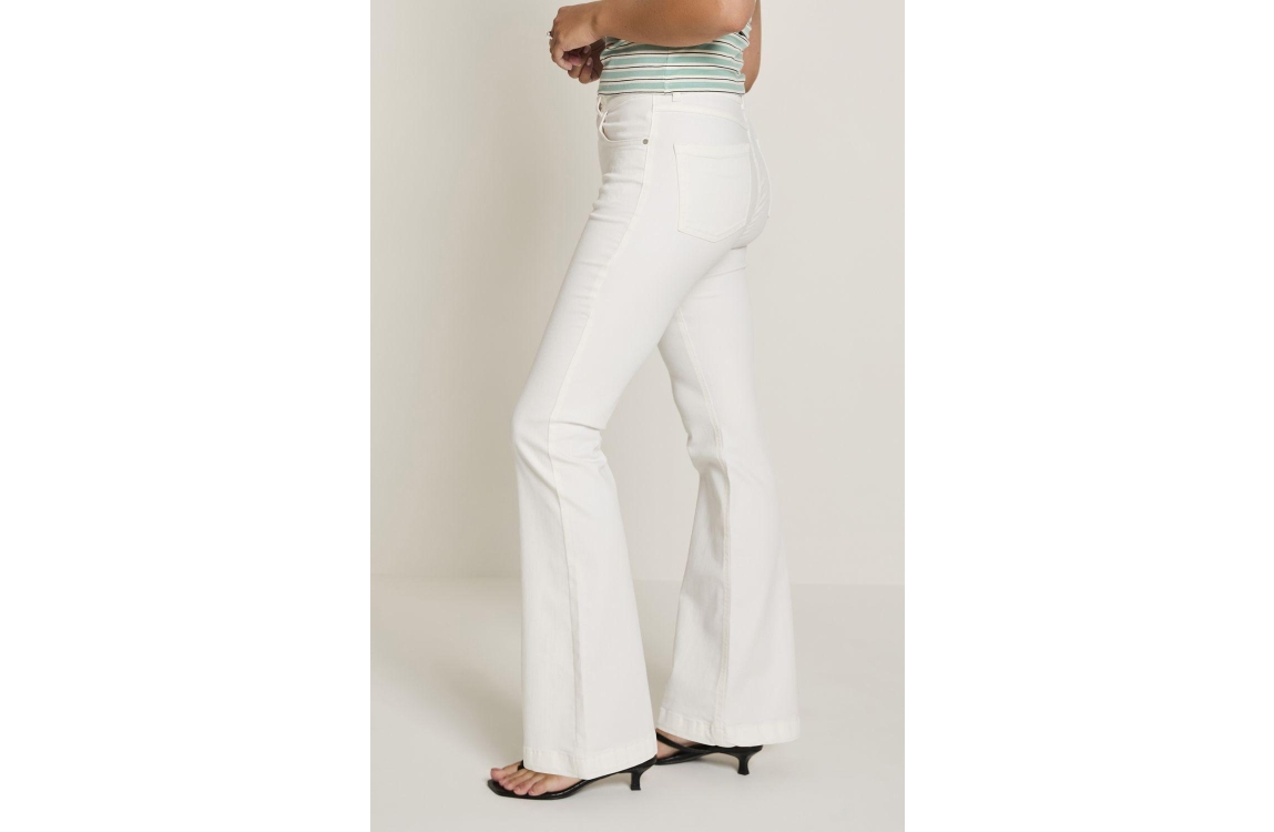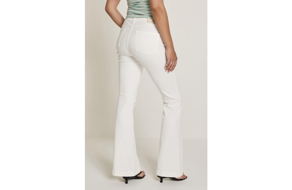 Parami Jade - Color Denim - 637 - Light Ol 002 White. Dit flared fit model sluit door middel van een knoop en rits met ceintuurlussen. Deze witte jeans van Parami beschikt over steekzakken aan de voor- en achterzijde.