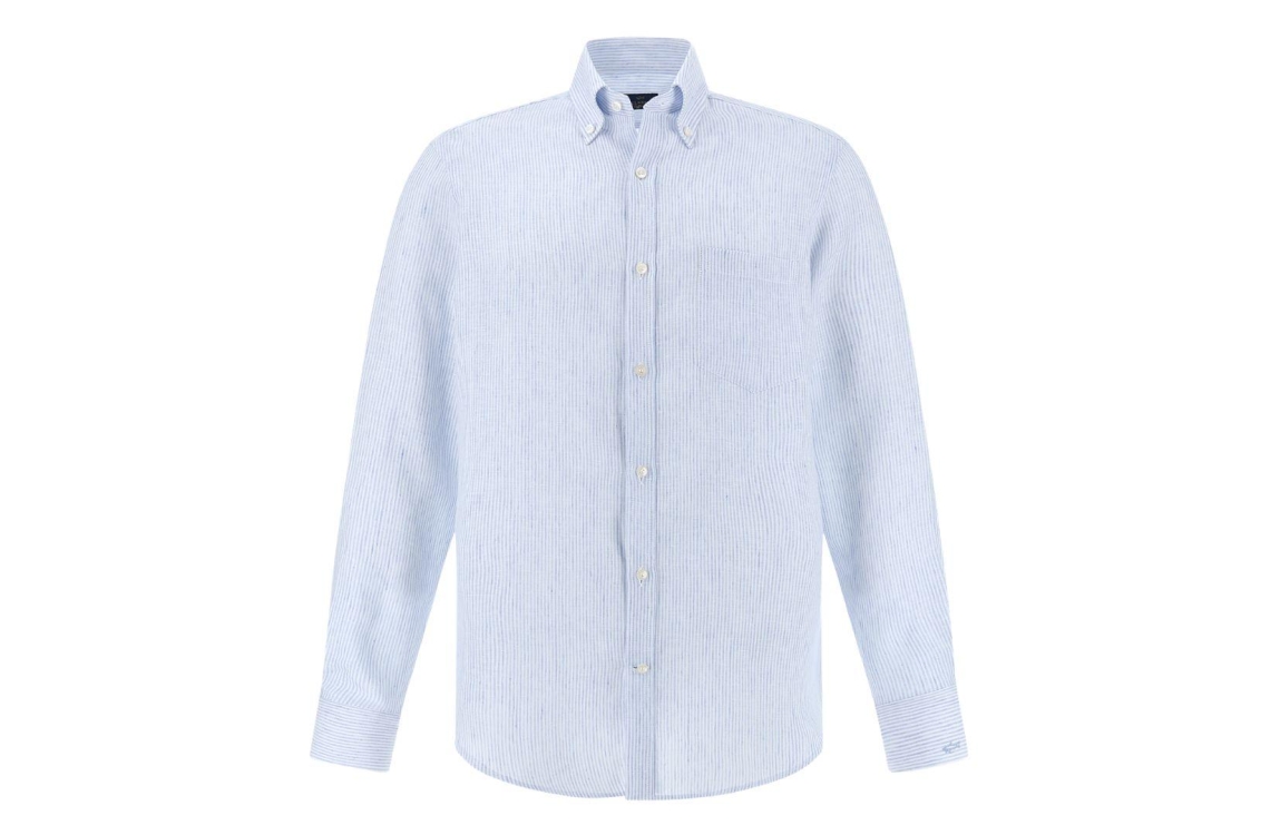 Paul & Shark overhemd Seersucker cotton 26413076R. Dit rechtvallend model is voorzien van een kraag en heeft lange mouwen. Deze blauwe/witte overhemd van Paul & Shark sluit door middel van knopen en beschikt over een borstzak. Dit model is all-over bewerkt met strepen.