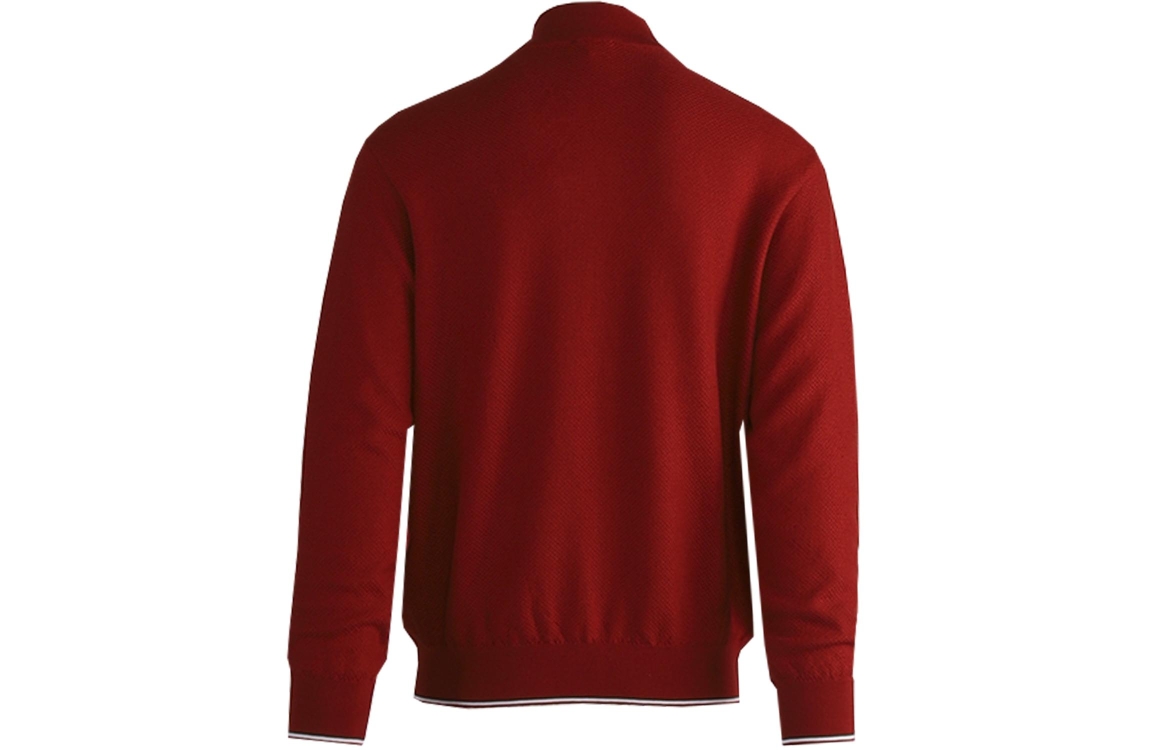 Paul & Shark pullover 15311166. Dit rechtvallend model is voorzien van een turtle neck met rits en heeft lange mouwen. Deze rode pullover van Paul & Shark is uitgevoerd in een gestructureerd kwaliteit.