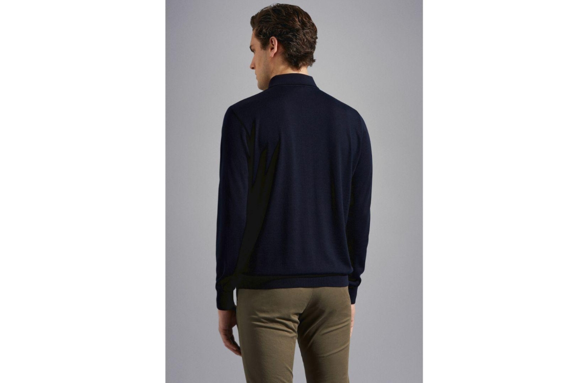 Paul & Shark superfine merino wol pullover 99311031. Dit rechtvallend model is voorzien van een kraag en heeft lange mouwen. Deze donkerblauwe wollen pullover van Paul & Shark sluit door middel van knopen.