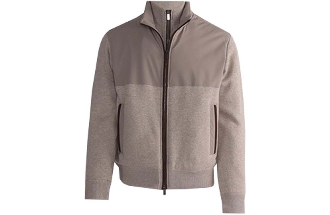 Paul and Shark vest 15311286 119. Dit rechtvallende model heeft een opstaande kraag en lange mouwen. Deze beige vest van Paul and Shark sluit aan de voorzijde door middel van een ritssluiting en is voorzien van twee steekzakken, met bruine details. Het model is deels uitgevoerd in een fijn breisel en is afgewerkt met ribgebreide boorden.