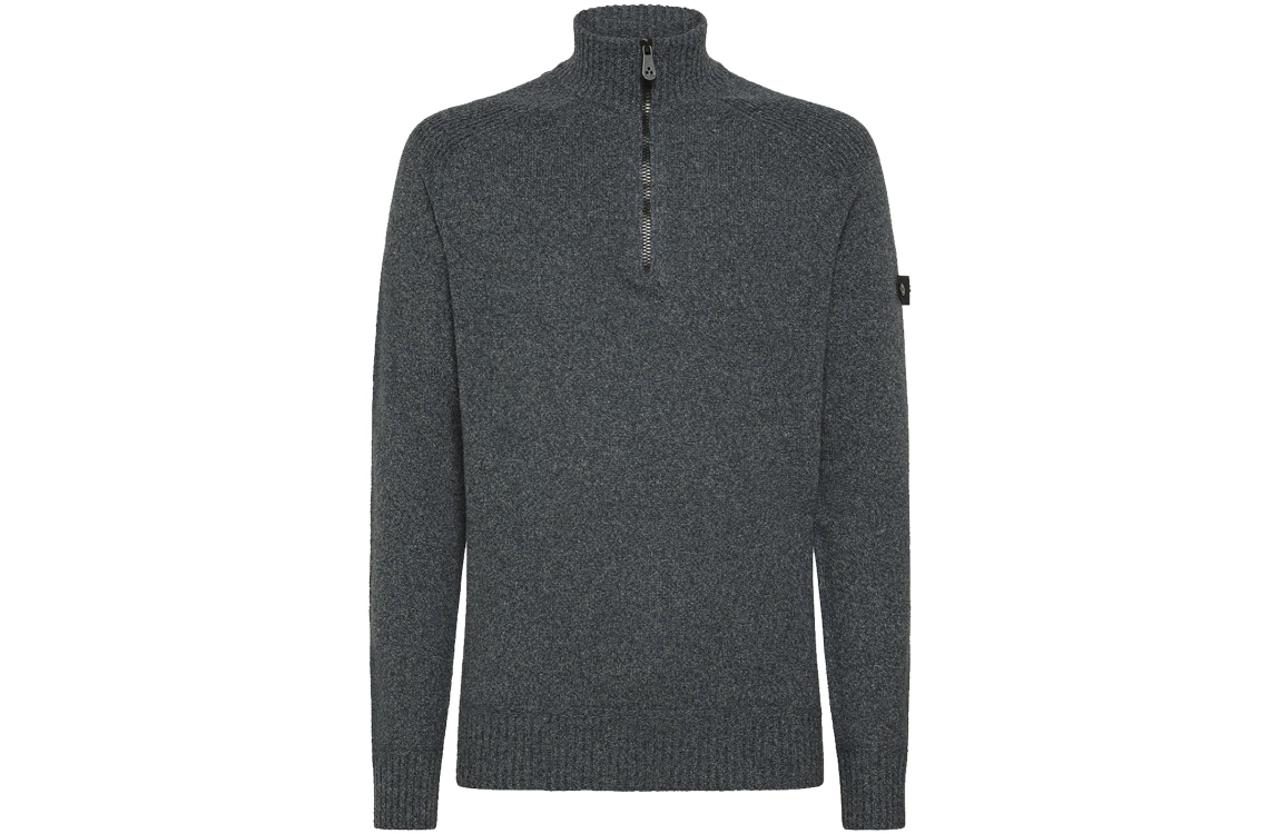 Peutery pullover Braille. Dit rechtvallende model is voorzien van een opstaande kraag en heeft lange mouwen. Deze blauwe trui van Peuterey sluit door middel van een rits aan de voorzijde en is uitgevoerd in een gêmeleerde kwaliteit.