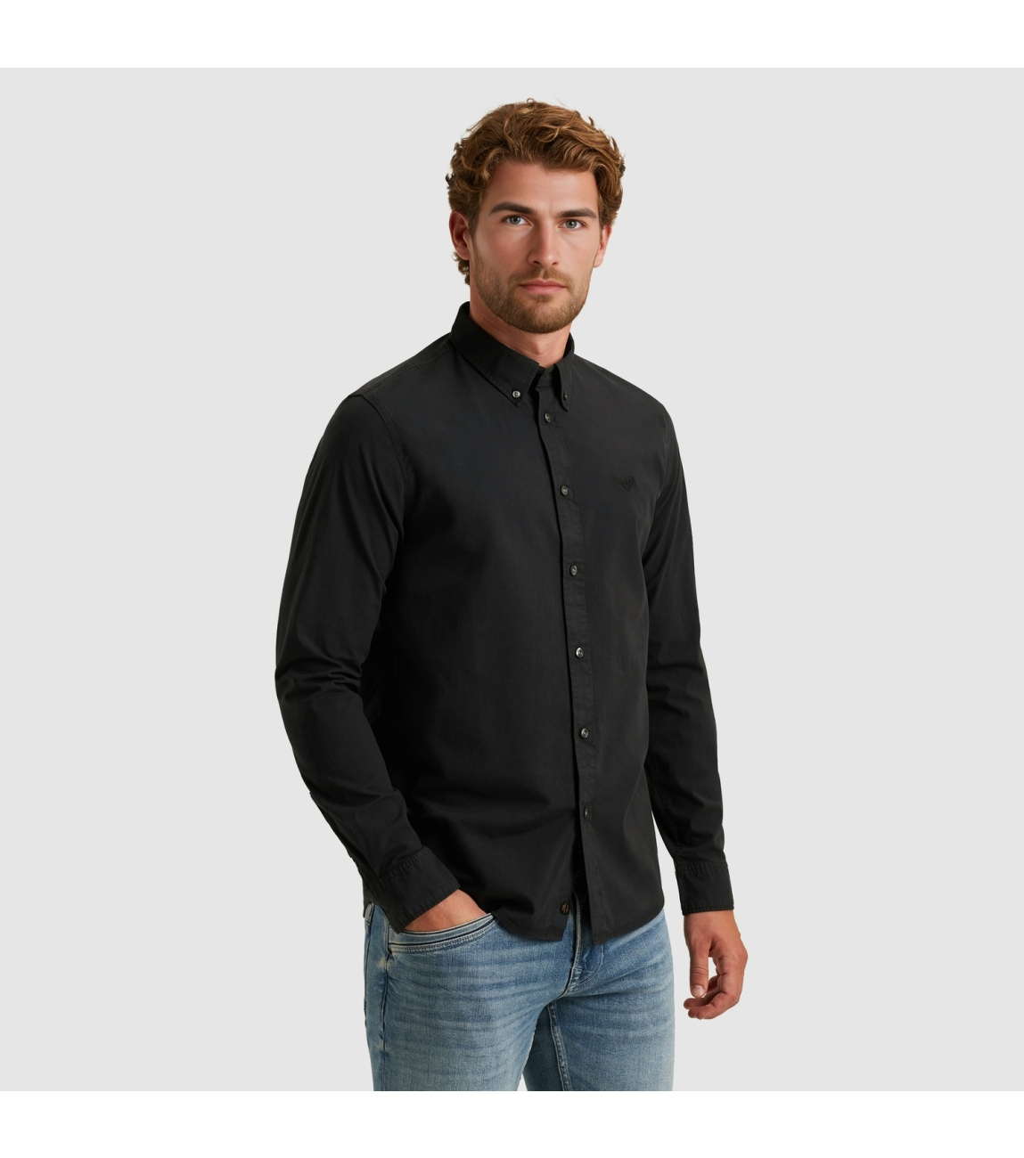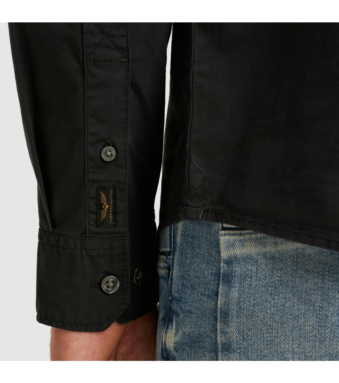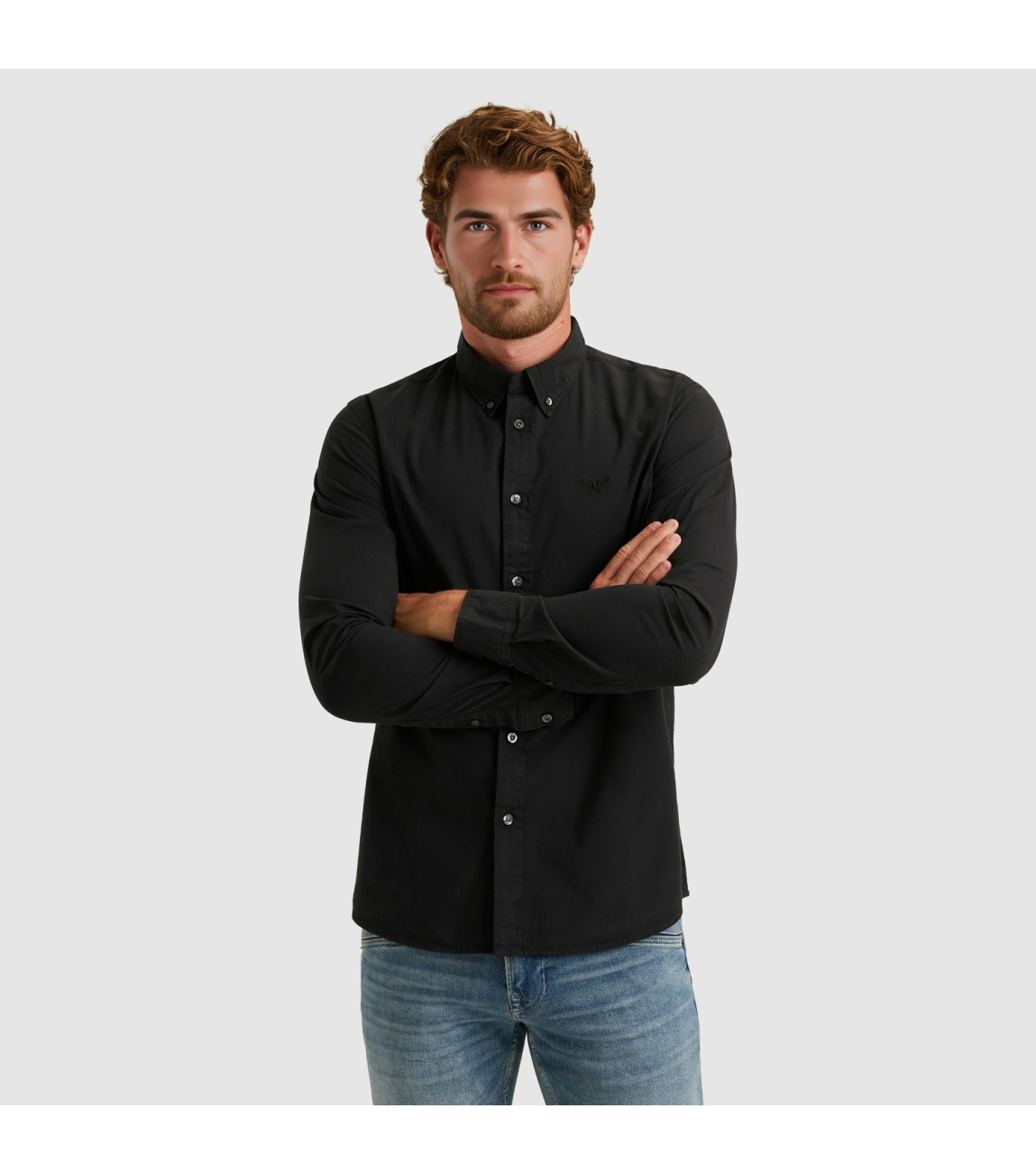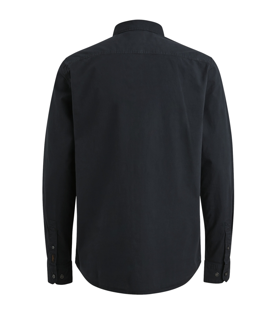 PME Legend overhemd PSI000044. Dit regular fit model heeft een kraag en lange mouwen. Dit donker blauwe overhemd van PME Legend sluit aan de voorzijde door middel van knopen en is bewerkt met het merkembleem op de linkerborst.