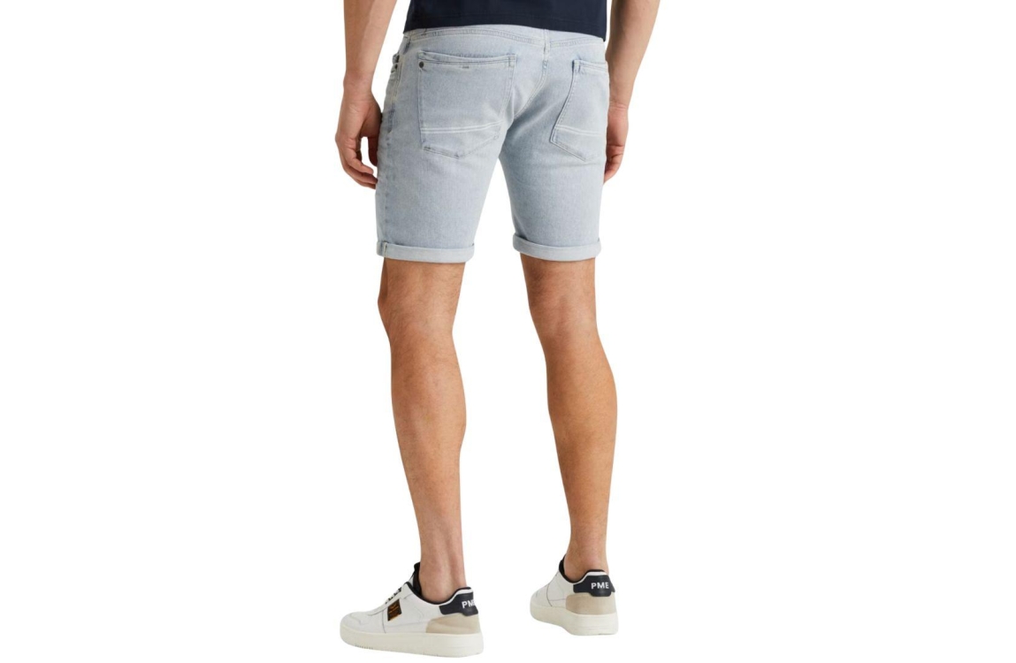 PME Legend short PSH2503768. Dit regular fit model sluit door middel van een knoop- en ritssluiting en is voorzien van ceintuurlussen. Deze lichte denim short van PME Legend beschikt over vier steekzakken, twee muntenzakjes en is afgewerkt met omgeslagen broekspijpen.