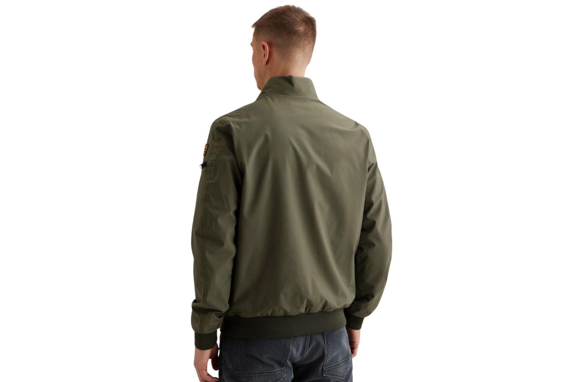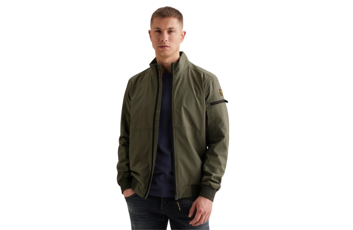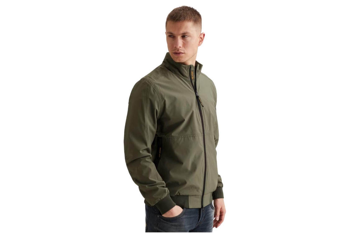 PME Legend jas PJA2602110 6150. Dit regular fit model heeft een opstaande kraag en lange mouwen. Deze groenkleurige jas van PME Legend sluit aan de voorzijde door middel van een rits en is voorzien van drie ritszakken. Het model is gedetailleerd met het merkembleem op de linkerarm en is afgewerkt met elastische, ribgebreide boorden.
