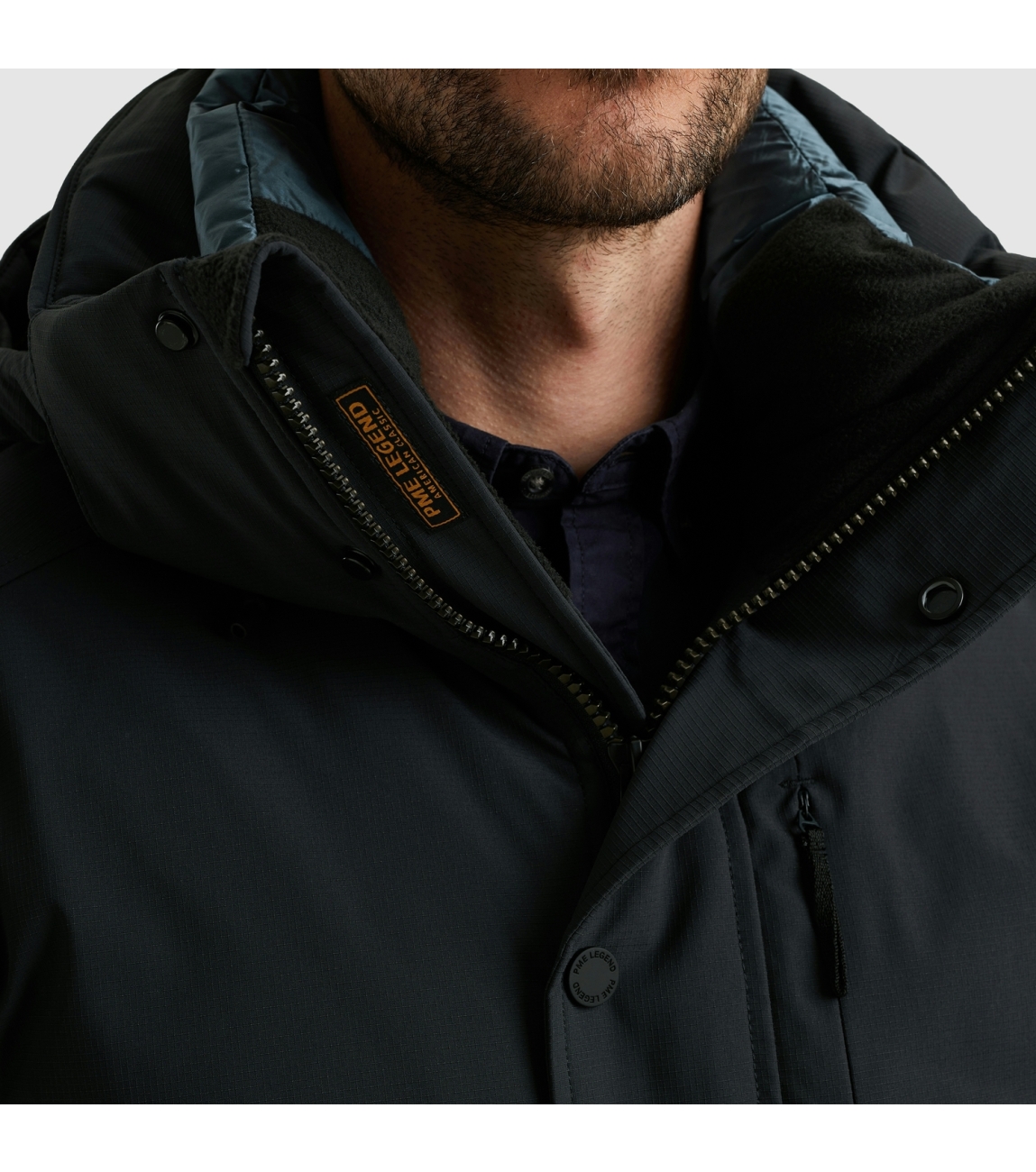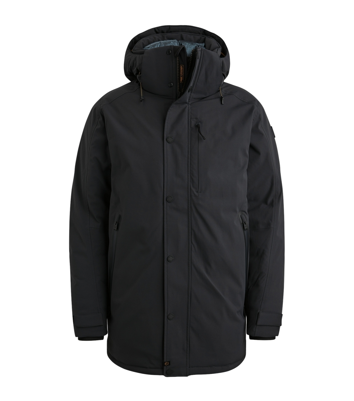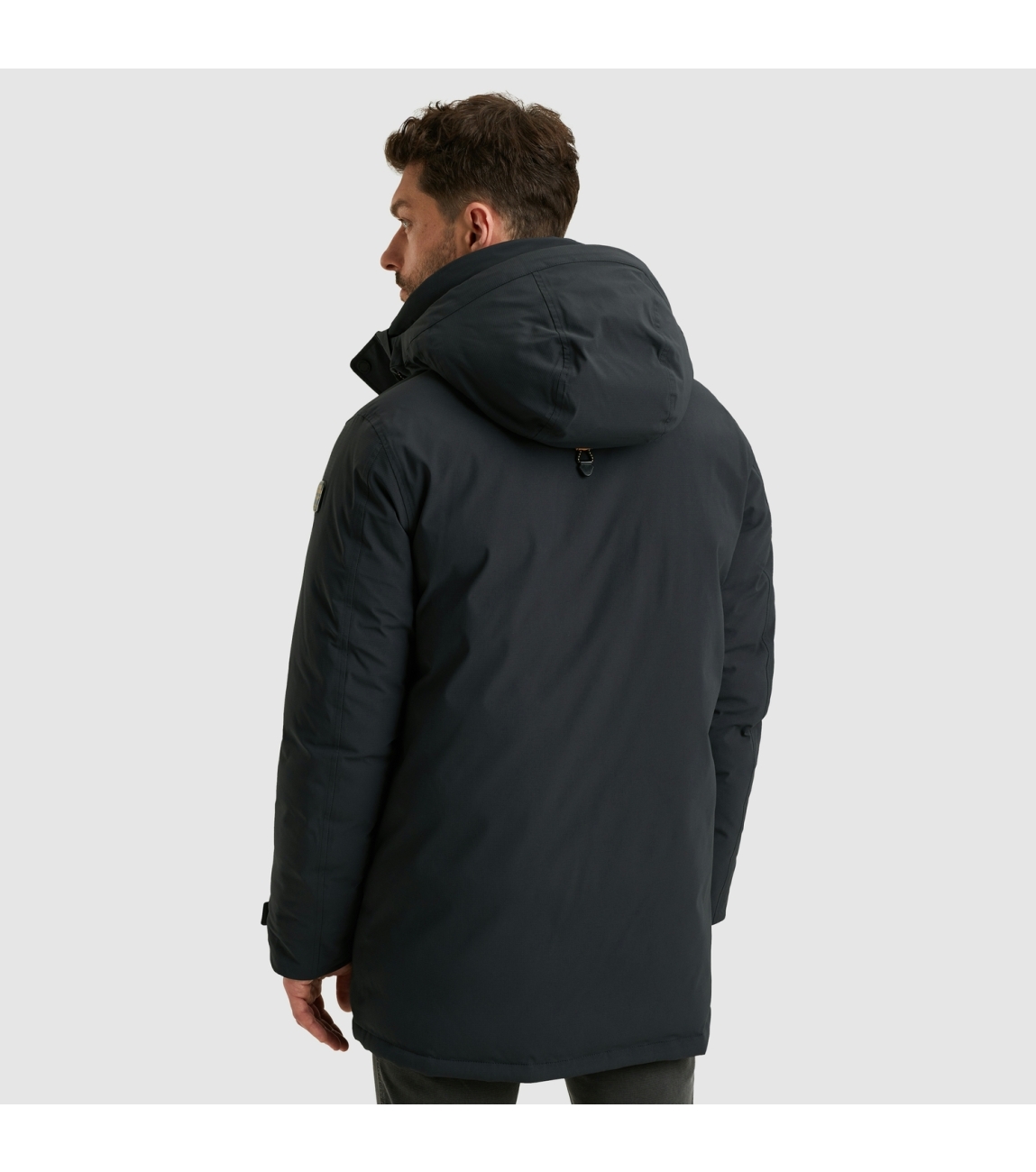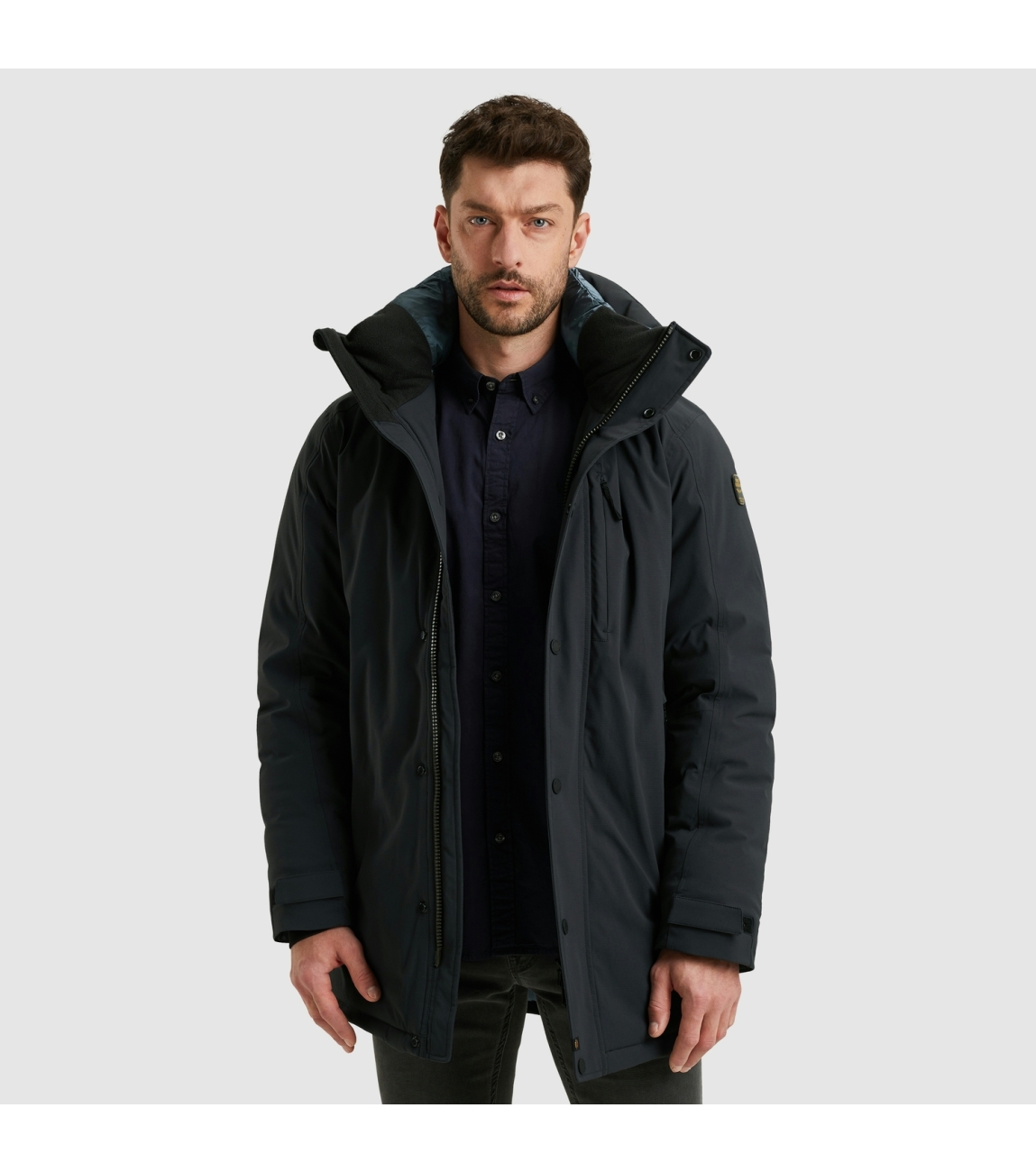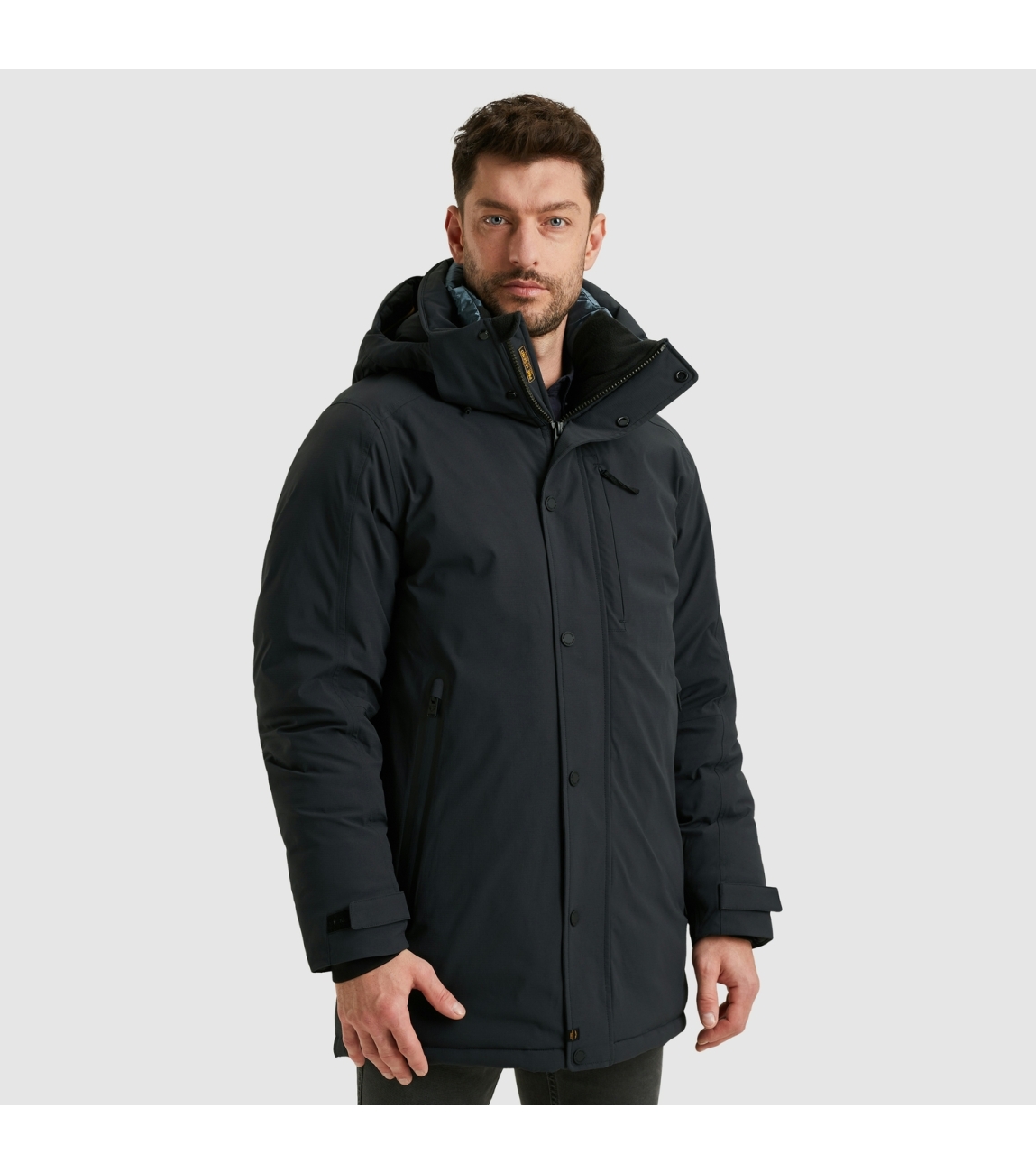 PME Legend winterjas Long jacket NIGHTFLIGHT Ripper. Dit regular fit model heeft een afneembare capuchon met een bondkraagje. Deze blauwe winterjas van PME Legend sluit door een rits en heeft een borstzak, 2 binnenzakken en 2 steekzakken, op de arm zit een merkembleem.