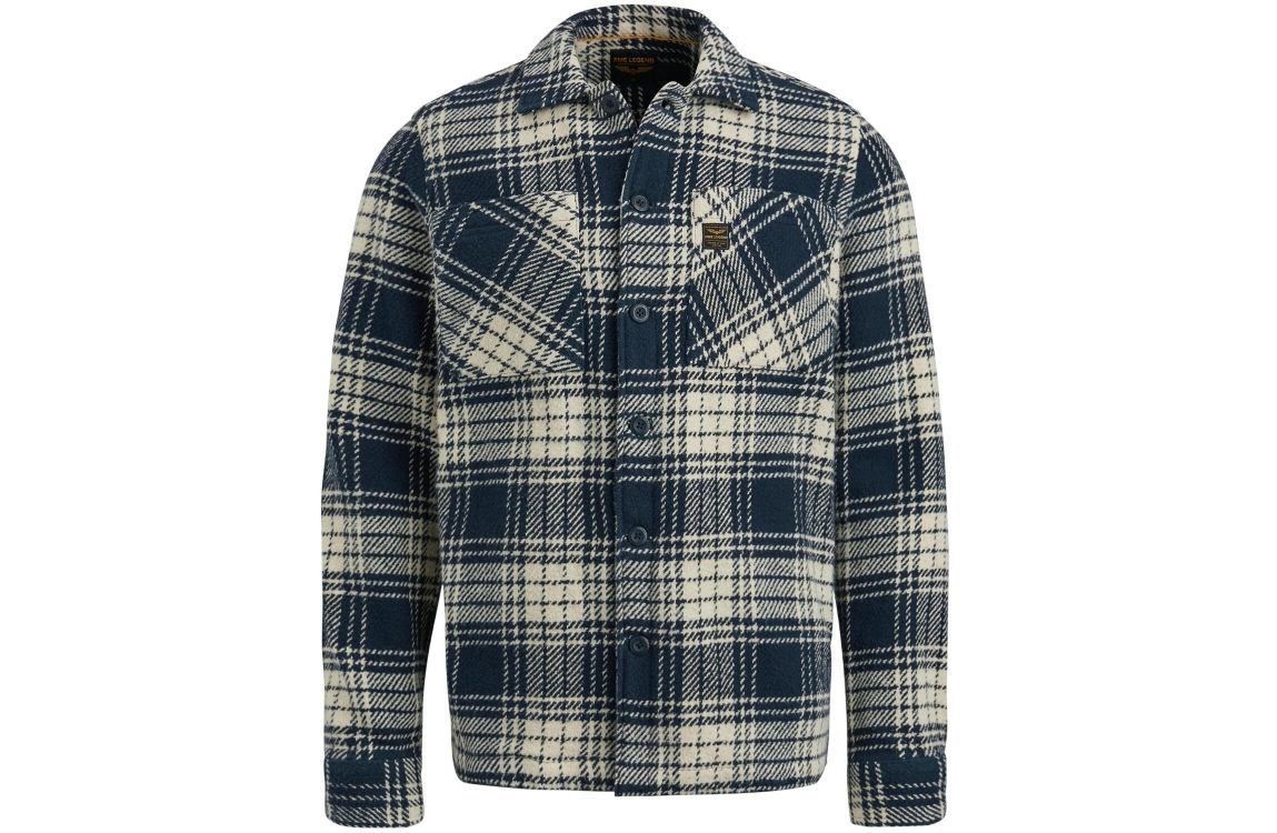 PME Legend overhemd PSI2309240. Dit rechtvallend model is voorzien van een kraag en heeft lange mouwen. Deze donkerblauwe/beige overhemd van PME Legend sluit door middel van knopen en beschikt over twee teekzakken, twee borstzakken met klittenband en twee binnenzakken. Dit model is bewerkt met een blokmotief en is uitgevoerd in een dikker kwaliteit.