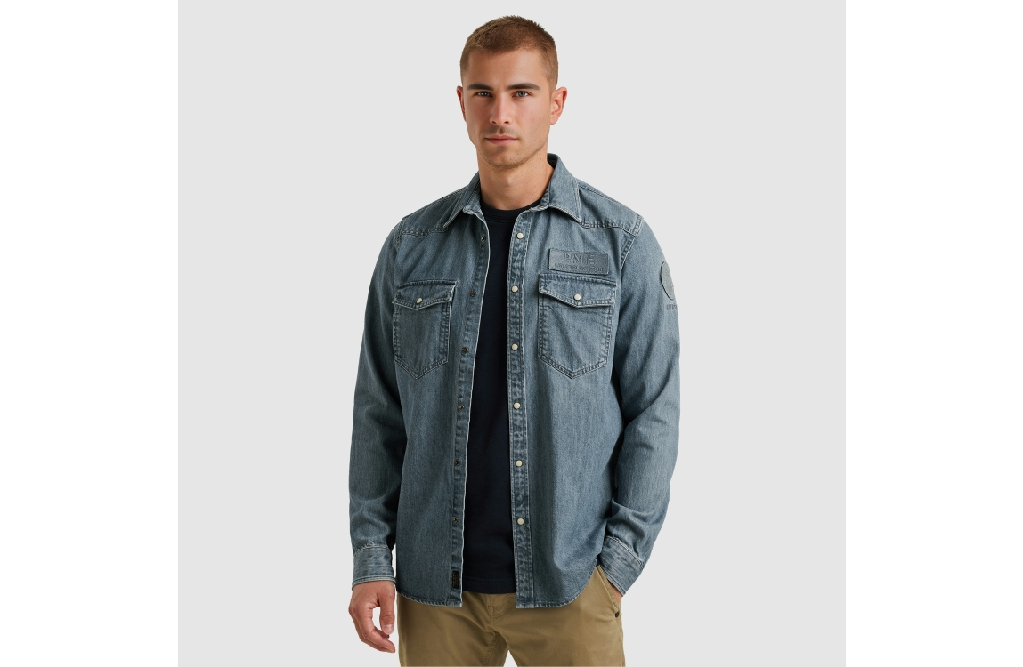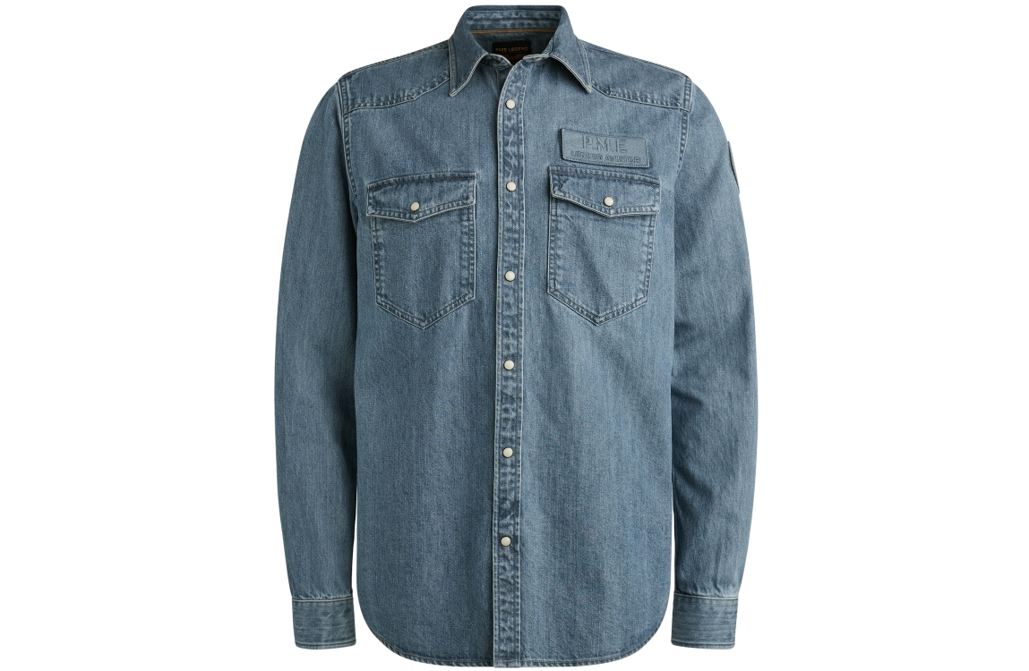 PME Legend overhemd PSI2511248. Dit rechtvallend model is voorzien van een kraag en heeft lange mouwen. Deze denim overhemd van PME Legend sluit door middel van knopen en is afgewerkt met twee borstzakken.