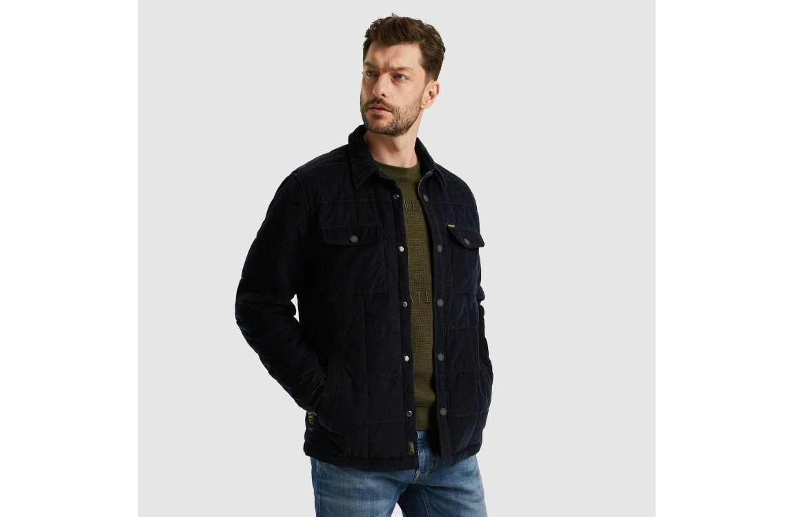PME Legend jas PSI2408217. Dit regular fit model heeft een spread kraag en heeft lange mouwen. Deze blauwe jas van PME Legend beschikt 2 borstzakken die sluiten doormiddel van knopen, 2 steekzakken en een logo op de arm.