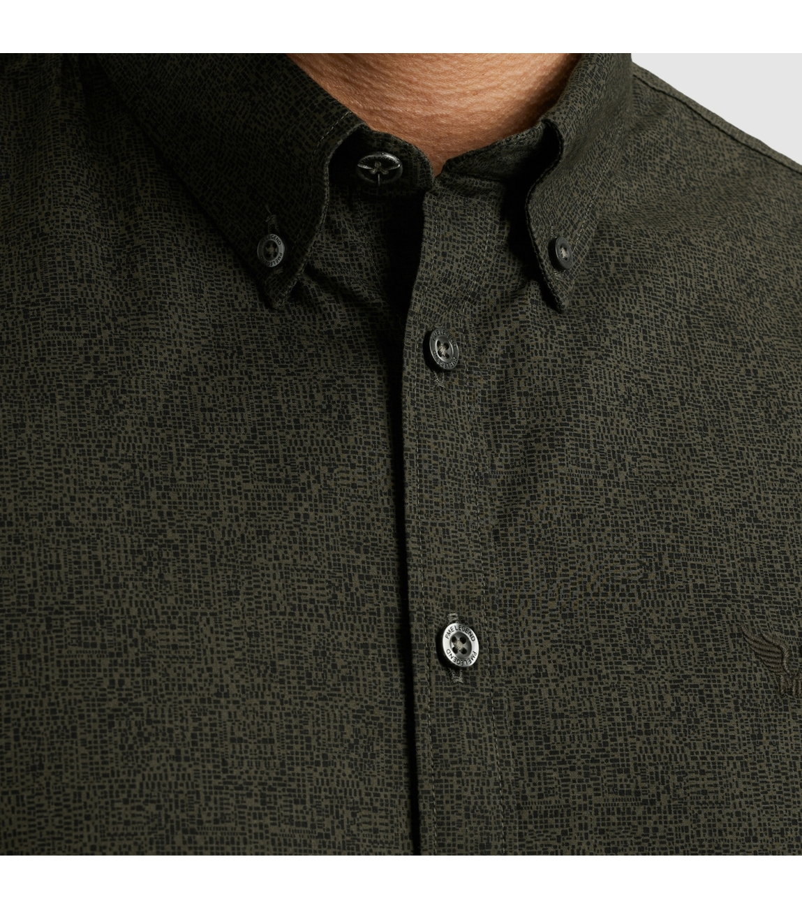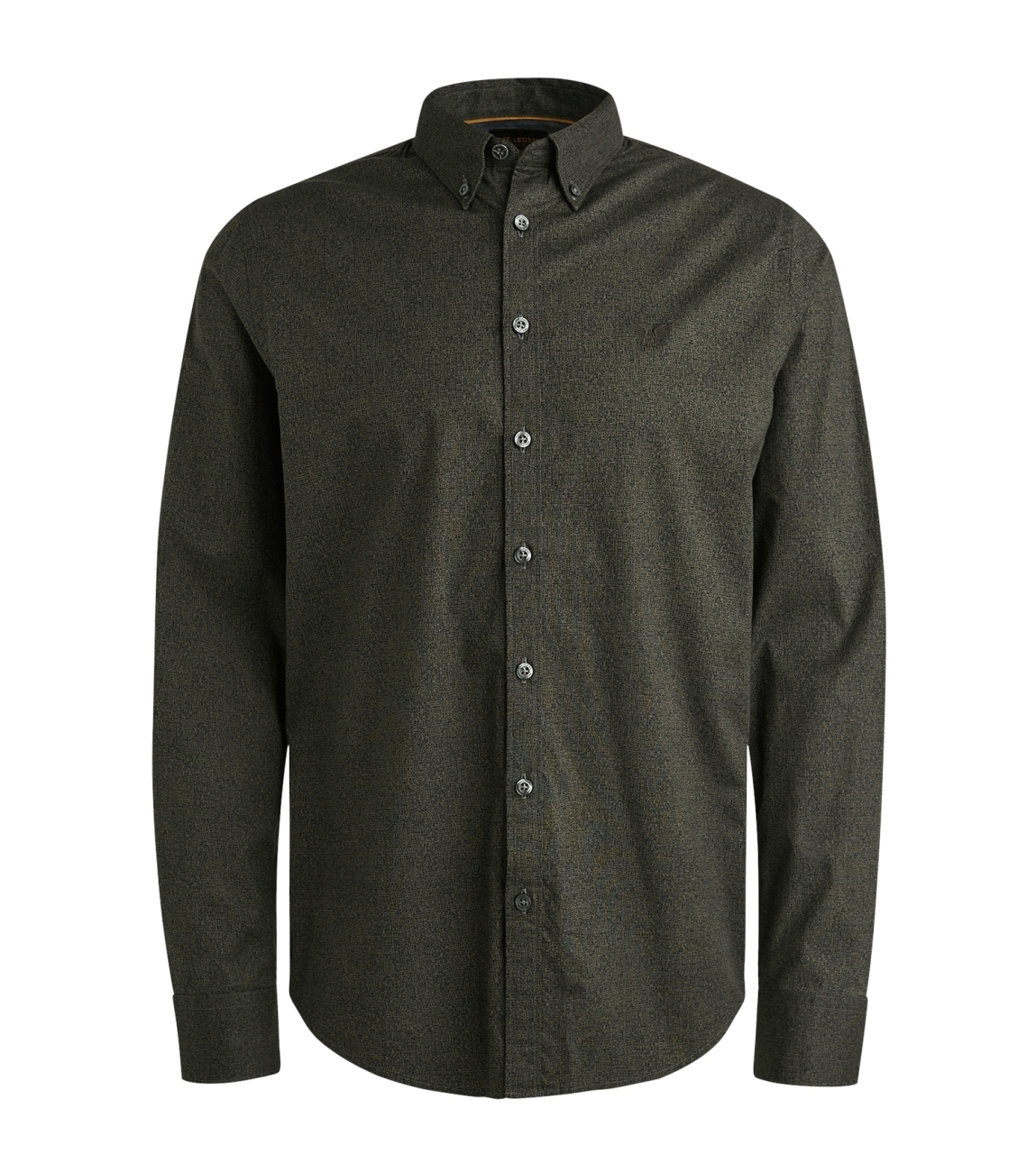 PME Legend overhemd PSI2509238. Dit regular fit model heeft een kraag en lange mouwen. Dit donkergroene geprinte overhemd van PME Legend sluit aan de voorzijde door middel van knopen en is bewerkt met het merkembleem op de linkerborst.