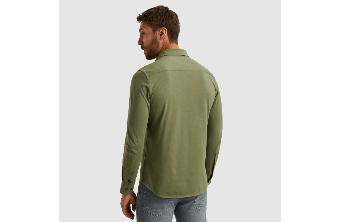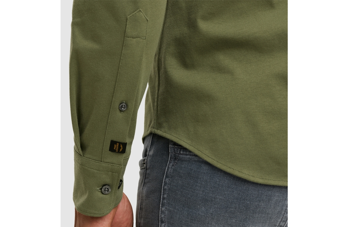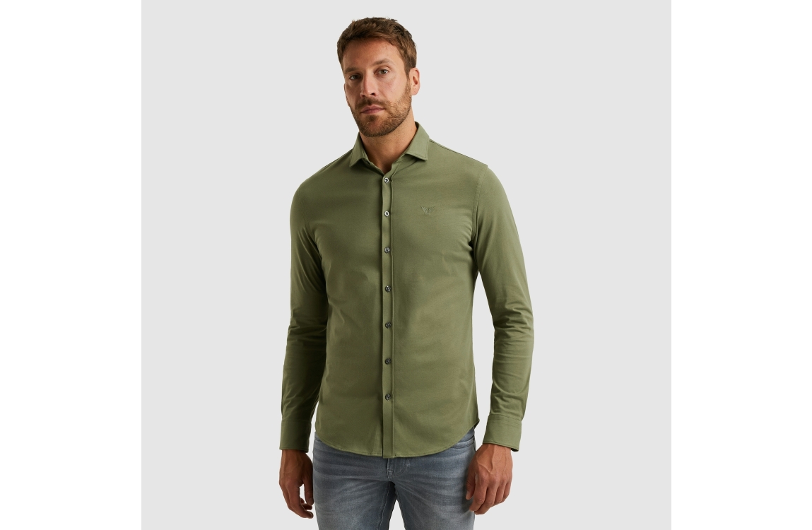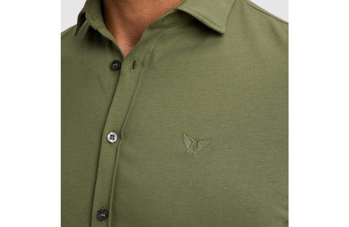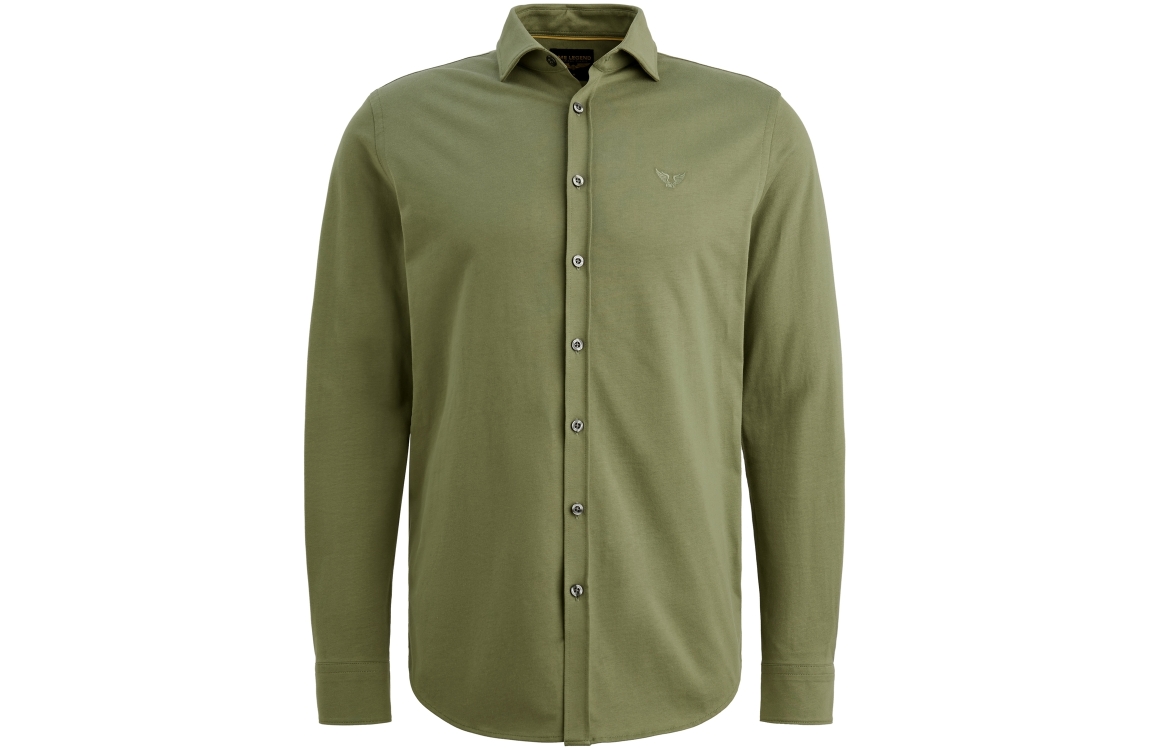 PME Legend overhemd PSI2511234. Dit rechtvallende model heeft een kraag en lange mouwen. Deze groene overhemd van PME Legend sluit aan de voorzijde door middel van knopen en is gedetailleerd met het merkembleem op de linkerborst.
