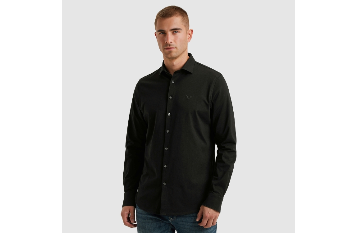 PME Legend overhemd PSI2511234. Dit rechtvallende model heeft een kraag en lange mouwen. Deze zwarte overhemd van PME Legend sluit aan de voorzijde door middel van knopen en is gedetailleerd met het merkembleem op de linkerborst.