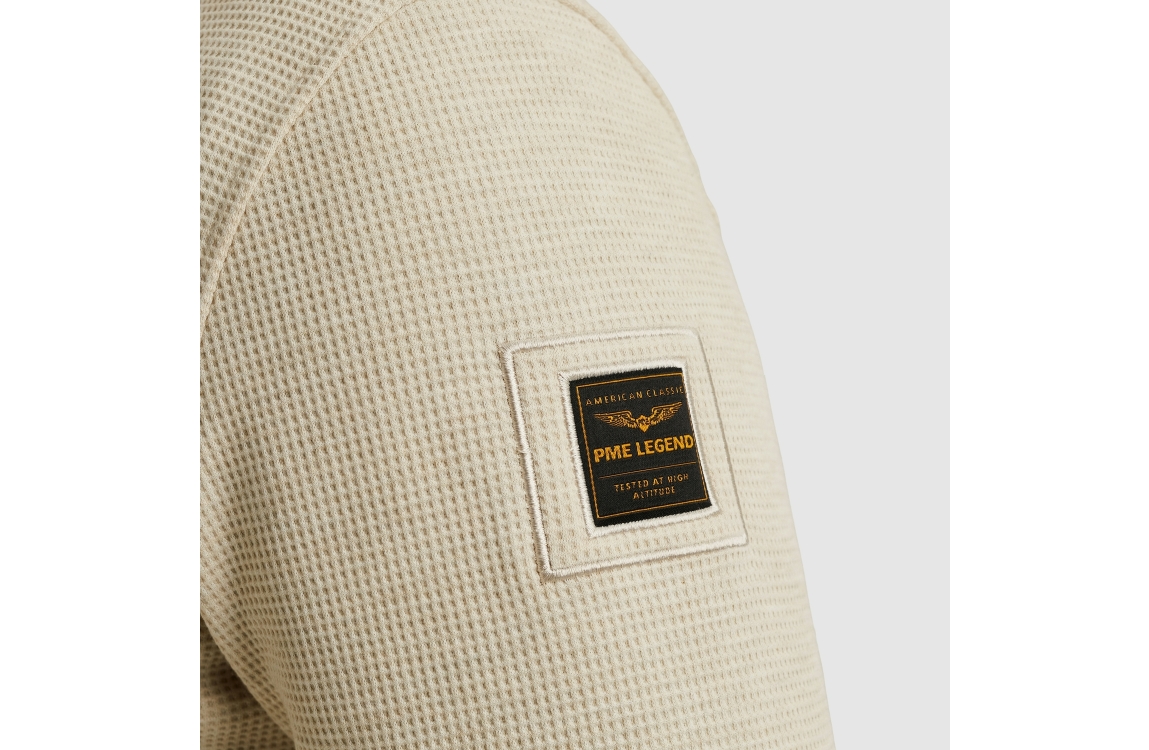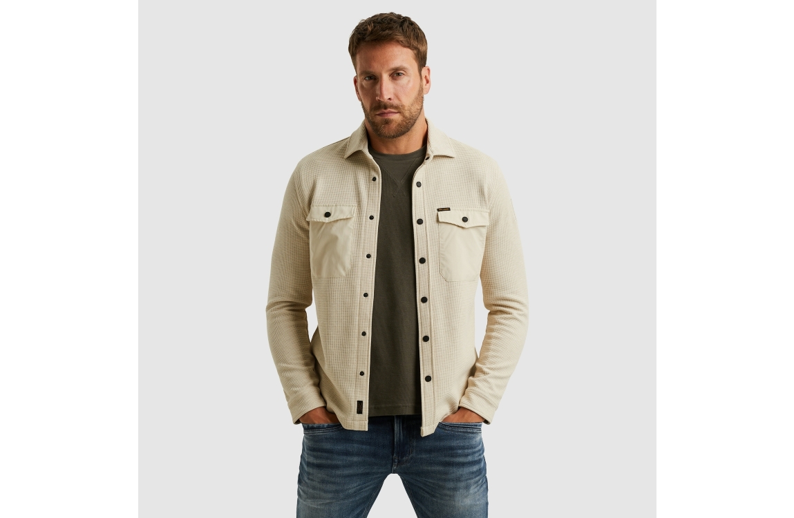 PME Legend overhemd PSI2511246 7013. Dit rechtvallende model heeft een kraag en lange mouwen. Deze off-white overhemd van PME Legend sluit aan de voorzijde door middel van knopen en is voorzien van twee borstzakken. Het model is all-over bewerkt in een wafelstructuur.