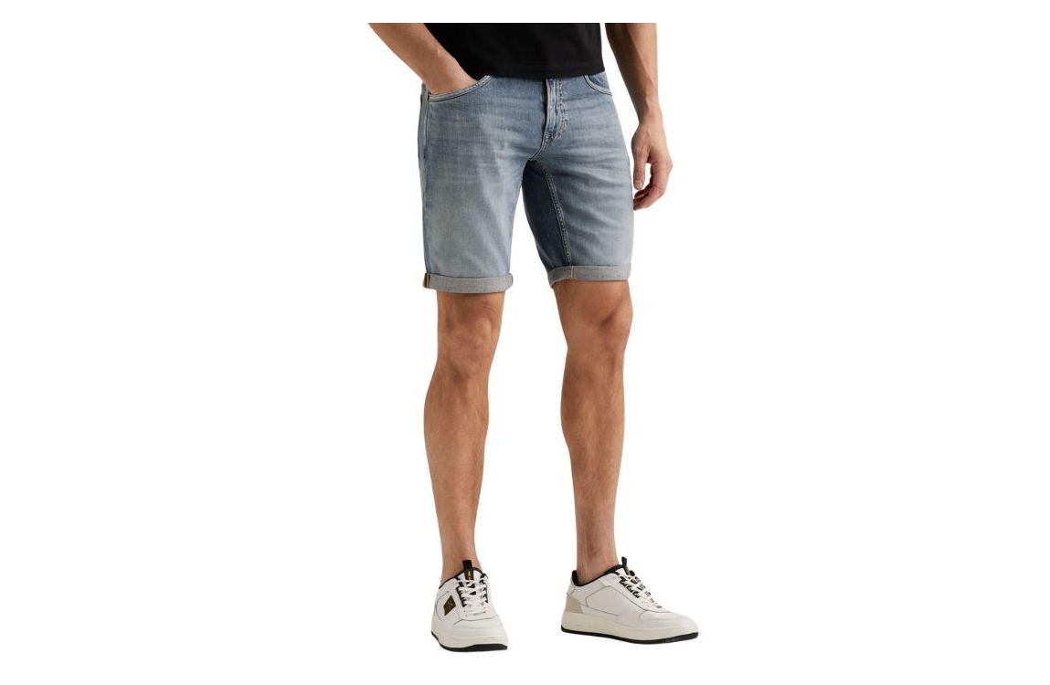 PME Legend short PSH165. Dit regular fit model sluit door middel van een knoop en ritssluiting en is voorzien van ceintuurlussen. Deze denim short van PME Legend is uitgevoerd in een 5-pocket model en is afgewerkt een bruinkleurige patch aan de achterzijde.