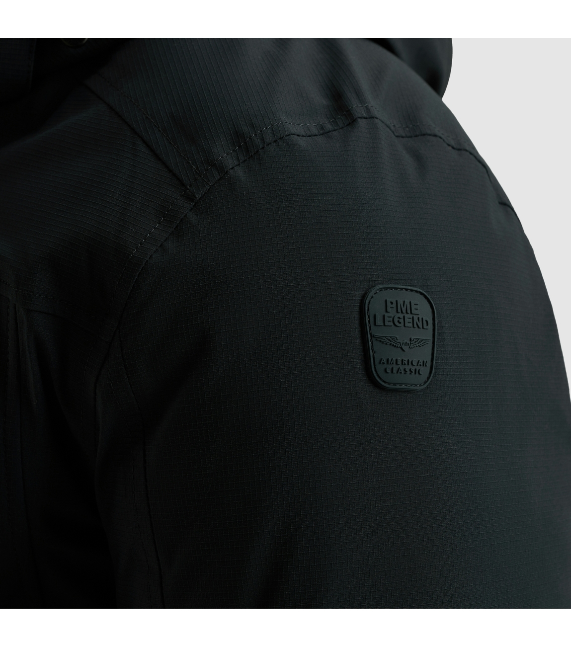 PME Legend Semi long jacjet CREWCAT Ripper. Dit rechtvallende model heeft een afneembare capuchon en lange mouwen. Deze blauwe winterjas van PME Legend heeft een borstzak, 2 binnenzakken en 2 steekzakken.