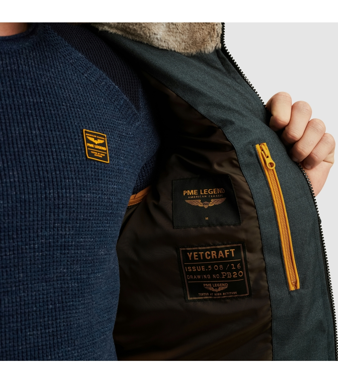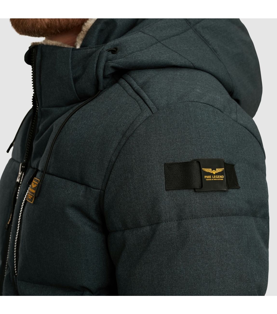 PME Legend winterjas Semi long jacket YETCRAFT Melange. Dit regular fit model heeft een afneembare capuchon met een bondkraagje. Deze blauwe winterjas van PME Legend sluit door een rits en heeft een borstzak, 2 binnenzakken en 2 steekzakken, op de arm zit een merkembleem.