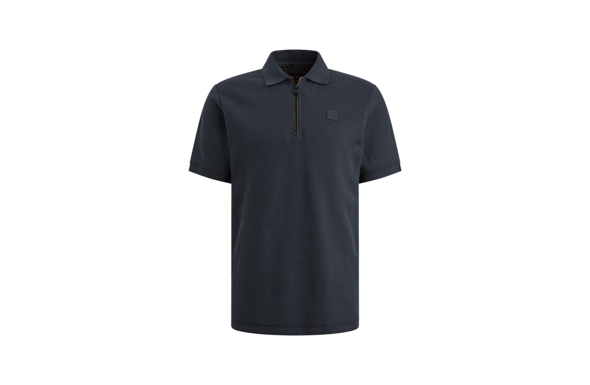 PME Legend polo PPSS2602857. Dit regular fit model heeft een kraag met rits en korte mouwen. Deze donkerblauwe PME Legend polo is uitgevoerd in een 'waffle'-materiaal en beschikt over een logo op de borst.