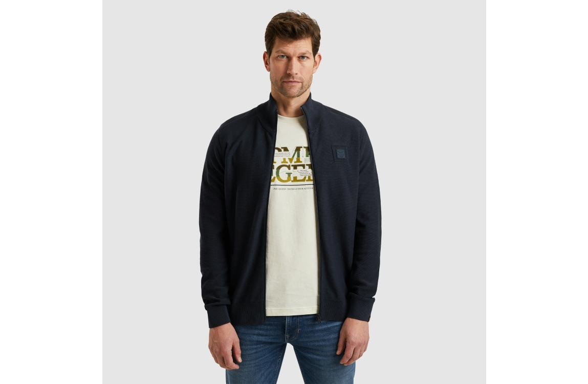 PME Legend zip jacket cotton modal. Dit regular fit model heeft een opstaande kraag en lange mouwen. Dit blauwe vest van PME Legend sluit doormiddel van een rits, heeft een gewoven structuur en heeft een merkembleem op de linker borst.