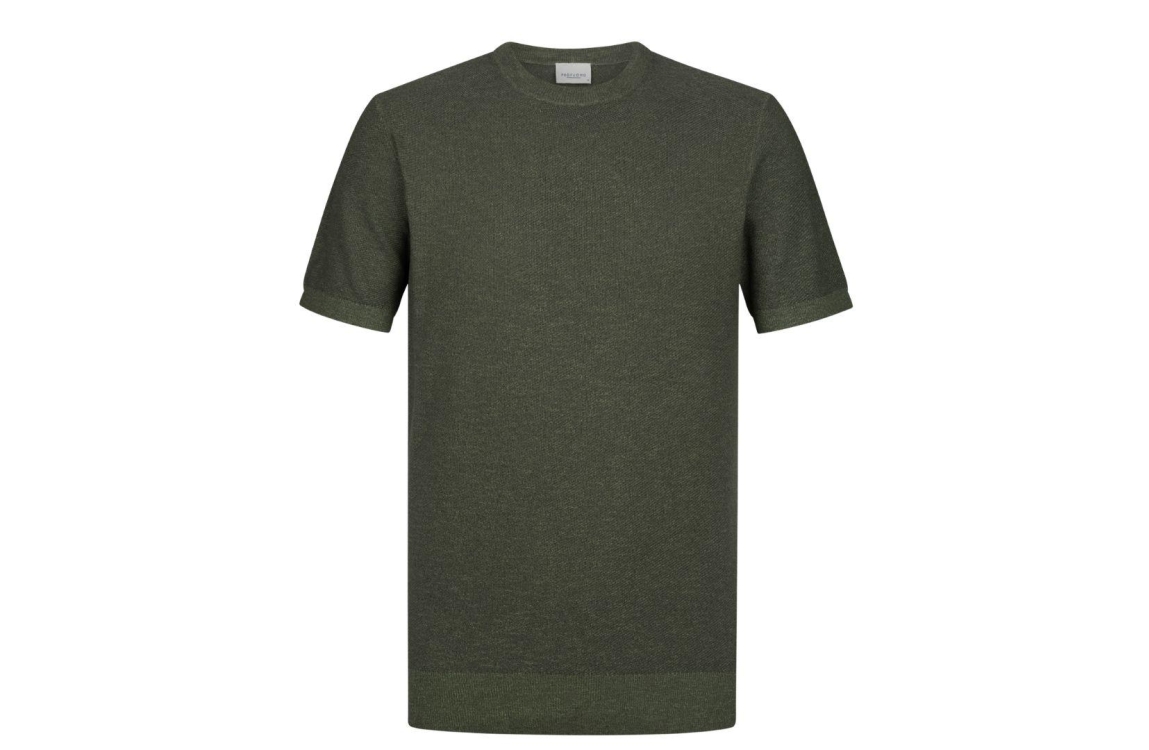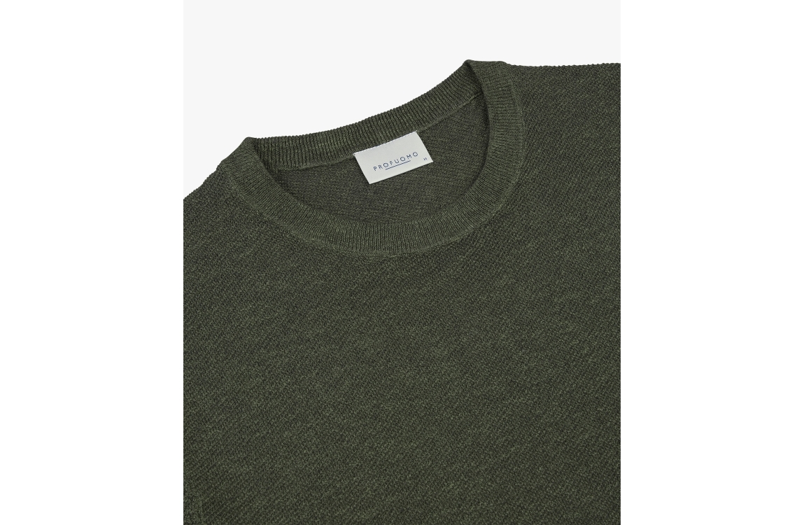Profuomo T-shirt crew neck PPXT10001E. Dit rechtvallend model is voorzien van een ronde hals en heeft korte mouwen. Deze groene T-shirt van Profuomo is uitgevoerd in een fijngebreid materiaal.