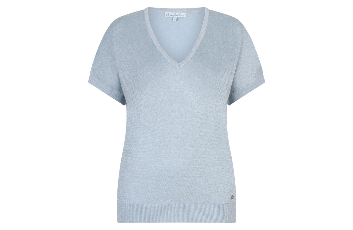 Red Button De Jerry Sparkle is een fijngebreid 31 Light blue. Dit rechtvallende model heeft een v-hals en korte mouwen. Deze licht blauwe top van Red Button is all-over bewerkt met glitter lurex en is afgewerkt met ribboorden. Dit model is verkrijgbaar in verschillende kleuren.