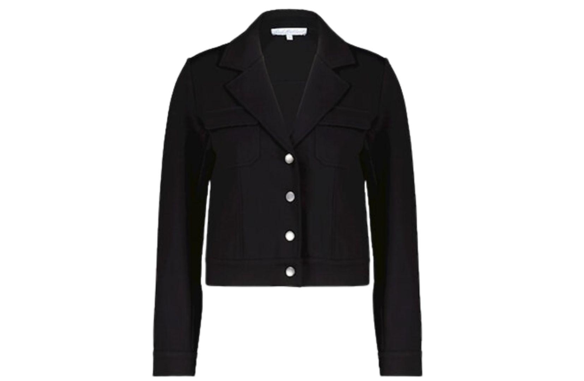 Red Button jacket jill punta srb4347. Dit cropped model heeft een v-hals met kraag, lange mouwen en sluit door middel van knopen. Dit zwarte jack van Red Button is voorzien van twee klepzakken op het voorpand.