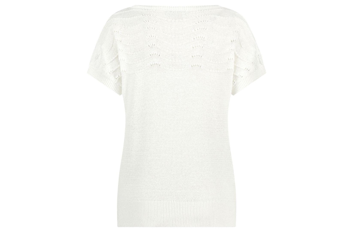Red Button Jerry top SRB4483. Dit rechtvallend model is voorzien van een ronde hals en heeft korte mouwen. Deze witte top van Red Button is aan de bovenzijde bewerkt met een golvende structuur.