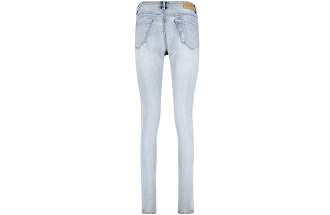 Red Button jeans 3807 Jimmy. Dit skinny fit model sluit door middel van een rits en een knoop afgewerkt met riemlussen. Deze lichtblauwe jeans van Red Button is voorzien van twee steekzakken en muntzakje aan de voorzijde en twee openstaande zakken aan de achterzijde.