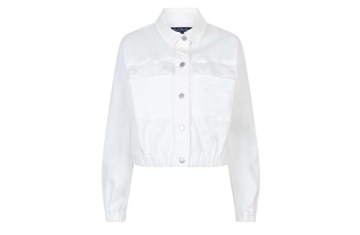 Red Button Juno Jacket SRB4903. Dit wijdvallend model is voorzien van een kraag en heeft lange mouwen. Deze witte denim jacket van Red Button sluit door middel van knopen en beschikt over twee klepzakken. Dit model is afgewerkt met een elastische boord aan de onderzijde.