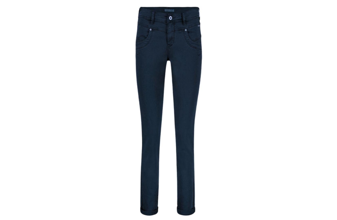 Red Button relax jog colour srb4286. Dit aangesloten model sluit door middel van een knoop en rits. Deze donkerblauwe jeans van Red Button is voorzien van verschillende steekzakken en afgewerkt met riemlusjes.