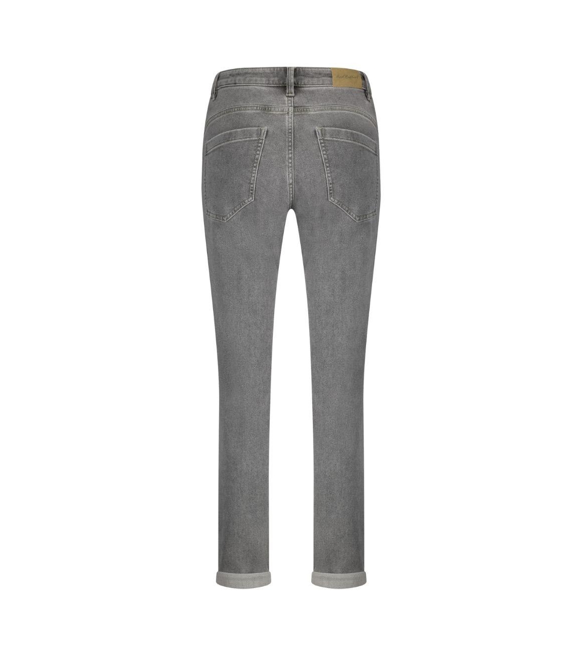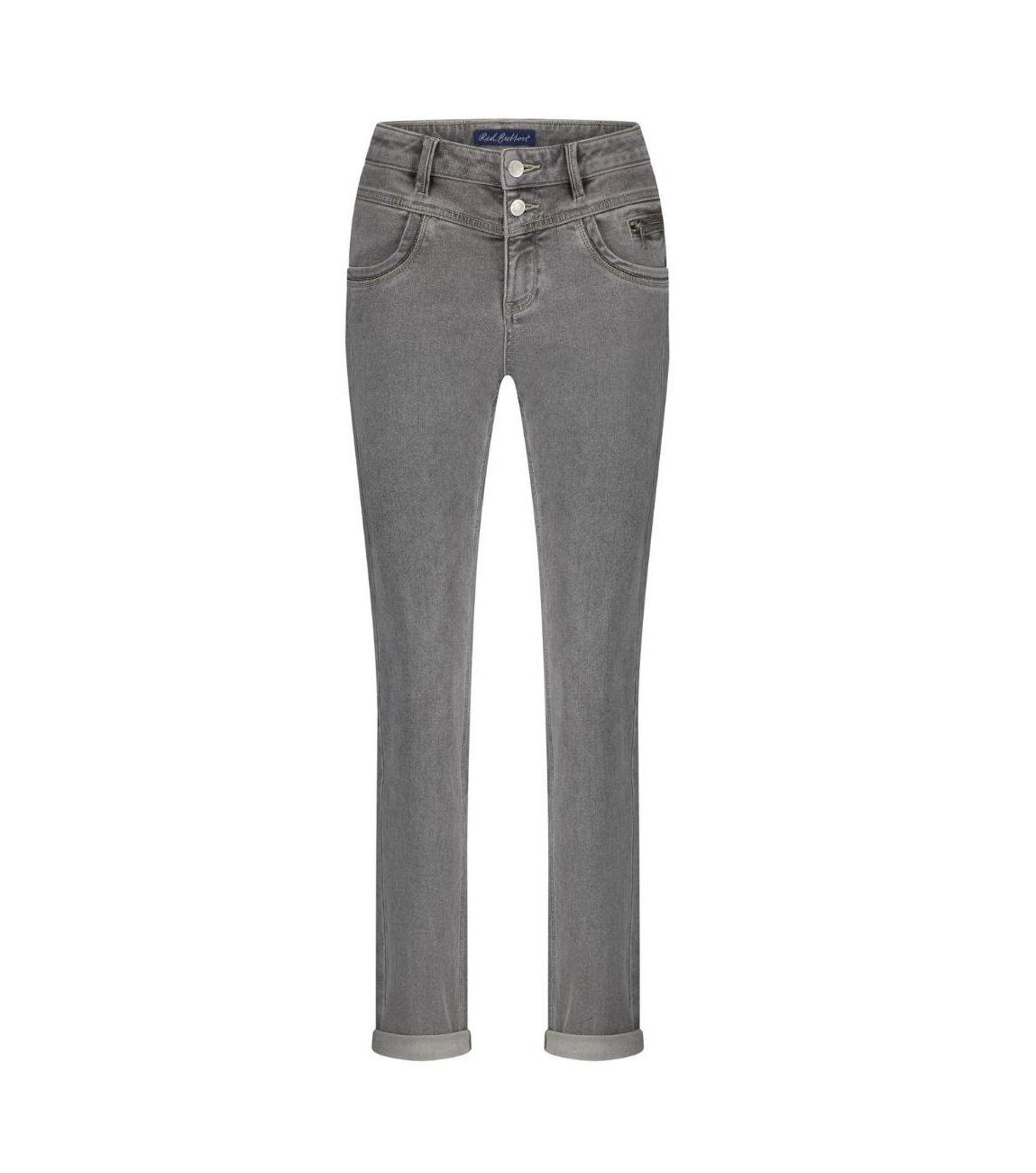 Red Button broek SRB4706. Dit slim fit model sluit door middel van knopen en een rits afgewerkt met ceintuurlussen. Deze grijze denim van Red Button beschikt over twee steekzakken met ritszakje aan de voorzijde en twee steekzakken aan de achterzijde.