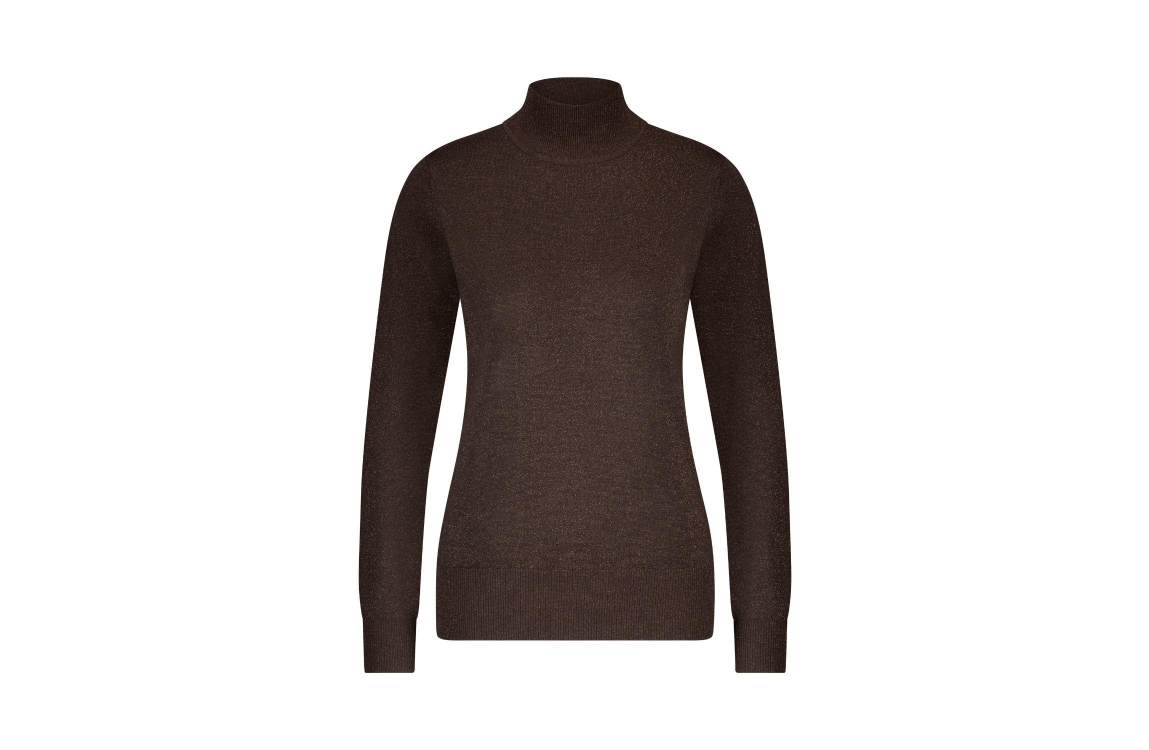 Red Button trui Turtle Sparkle SRB4685. Dit rechtvallend model is voorzien van een turtle hals en heeft lange mouwen. Deze bruin Red Button trui is afgewerkt met een all over glitter materiaal.