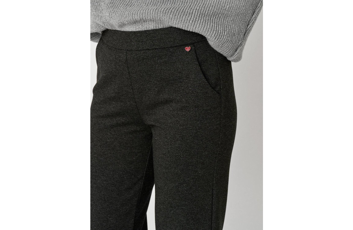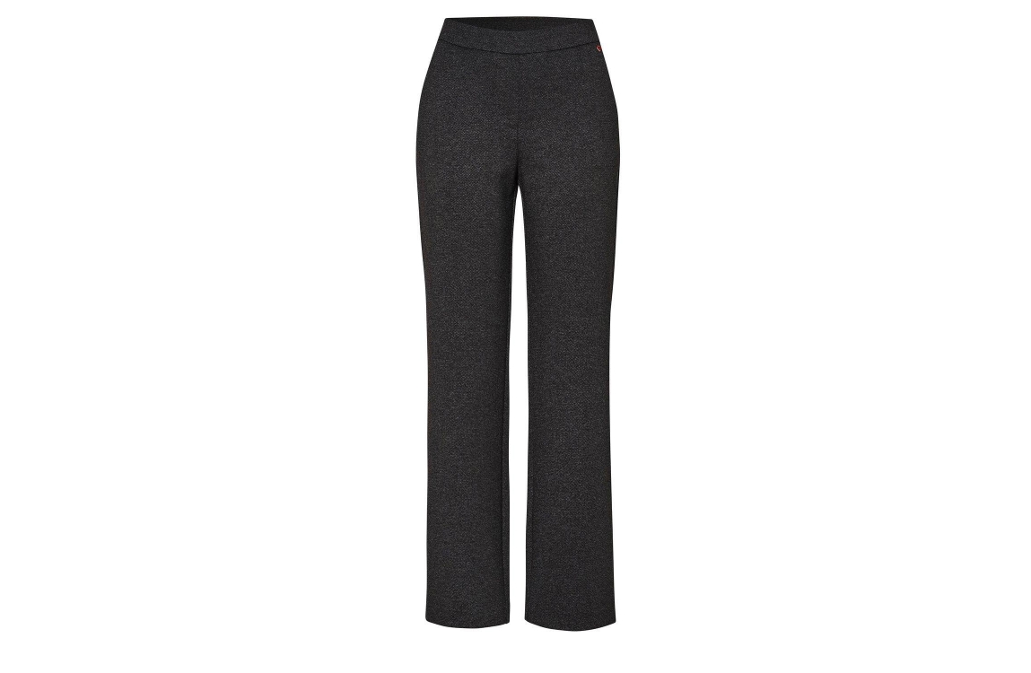 Relaxed by Toni broek Scarlet 67-04 2243-19. Dit wide leg model sluit door middel van een elastische tailleboord en is uitgevoerd in stretch kwaliteit. Deze grijze broek van Relaxed by Toni beschikt over twee steekzakken aan de voorzijde en is afgewerkt met een klein rood hartje op de zoom.