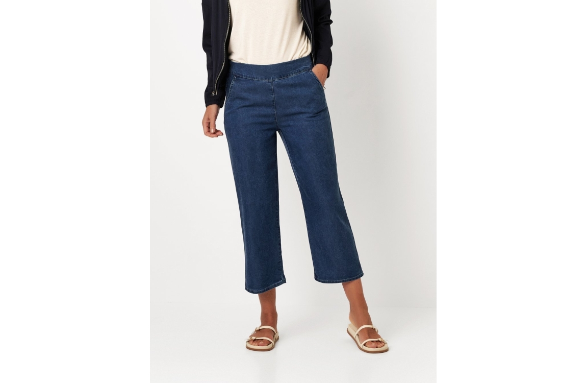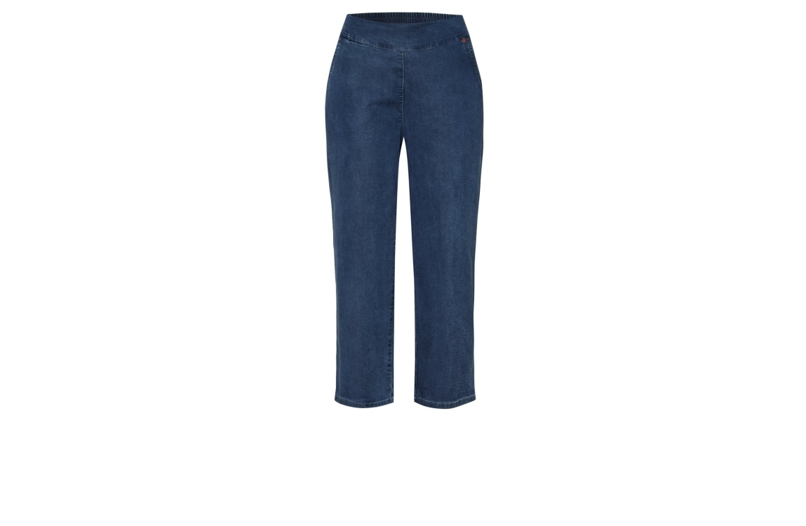Relaxed by Toni broek 12-19/2243-24 057. Dit 6/8 model sluit door middel van een elastische boord. Deze donkere denim broek van Relaxed by Toni is voorzien van twee schuine steekzakken.