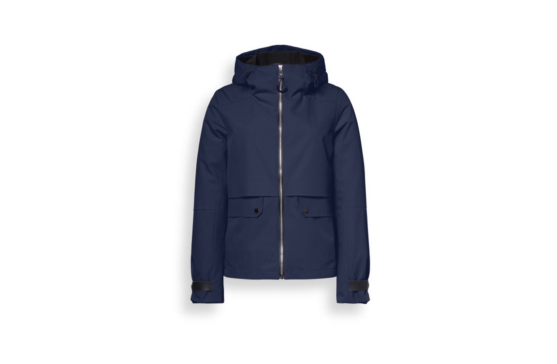 Reset jas LR00310261 5280. Dit regular fit model heeft een capuchon en lange mouwen. Deze donkerblauwe jas van Reset sluit aan de voorzijde door middel van een ritssluiting en is voorzien van twee sluitbare klepzakken. Het model is afgewerkt met een gespdetail op de mouwboorden.